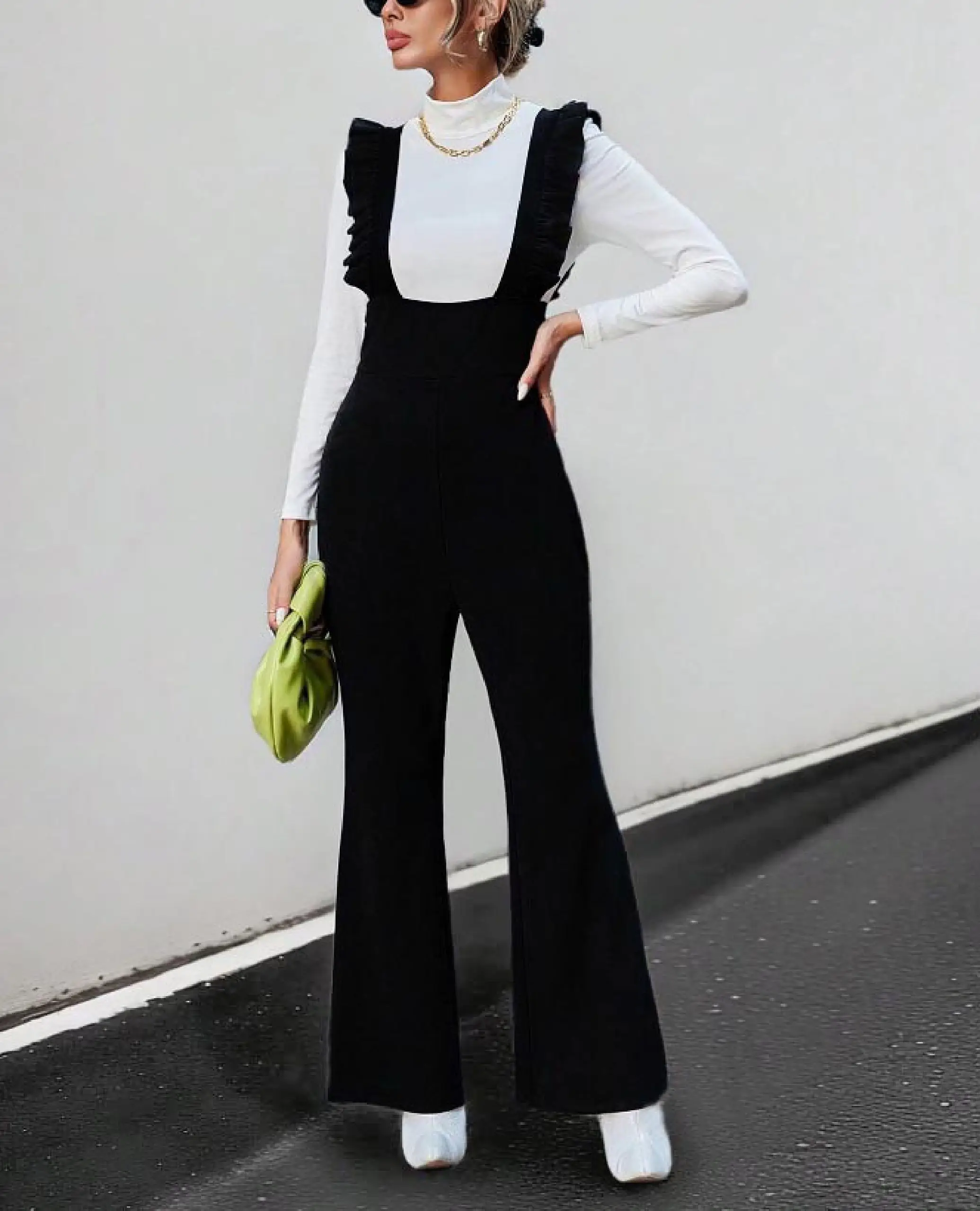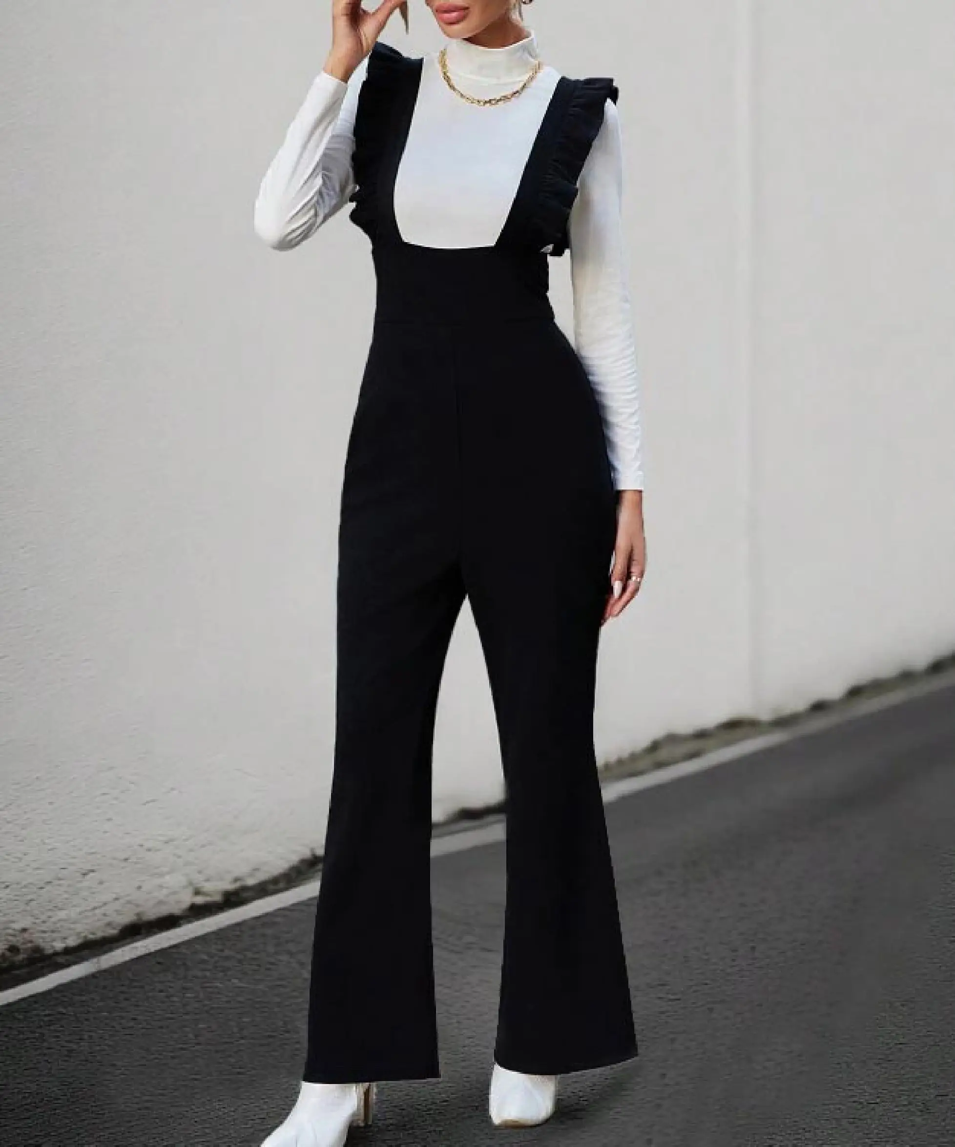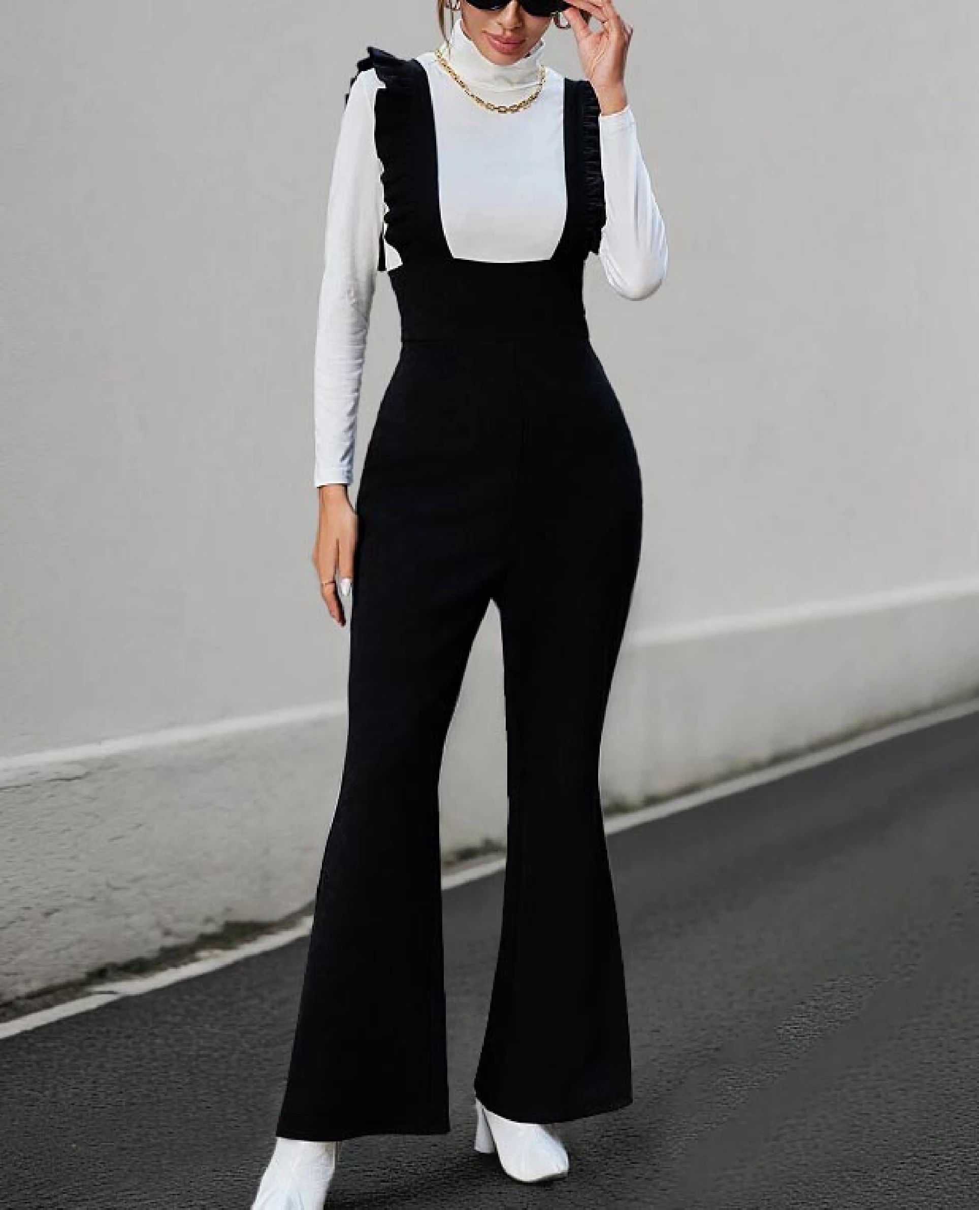 2025 Women's Halter Jumpsuit Sleeveless Flare Pants for Night Club Birthday Party Sexy Solid Streetwear Outfit