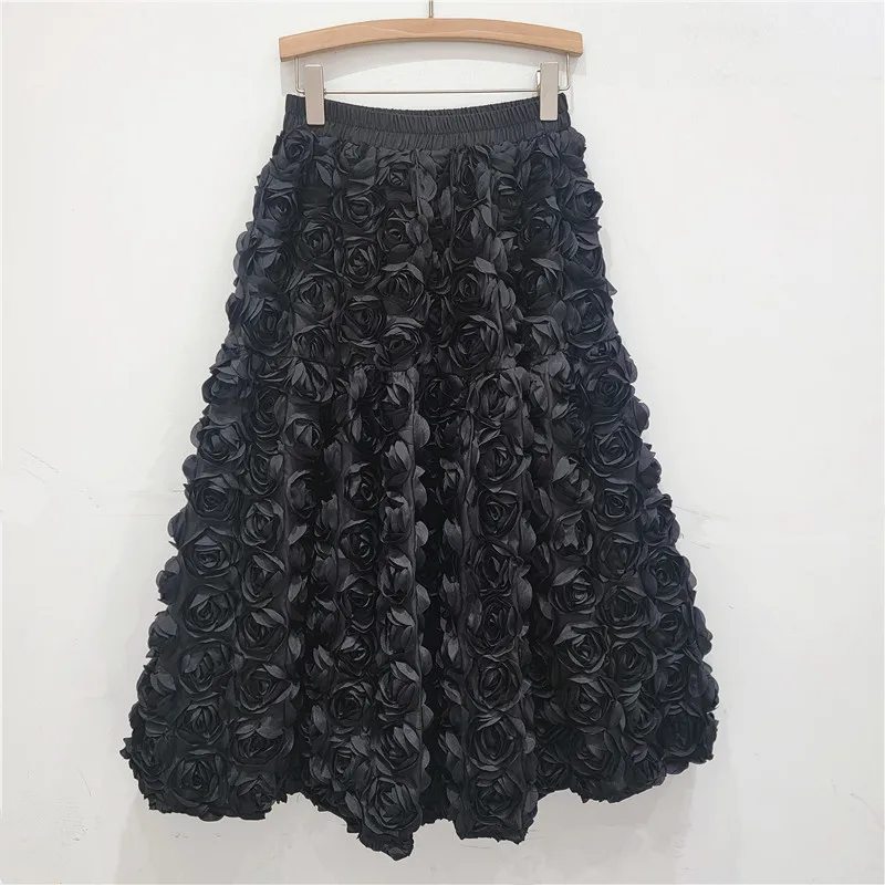 2025 New Women's A-Line Mini Skirt 3D Floral Cocktail Party Skirt with Stretch Waist Elegant Solid Color