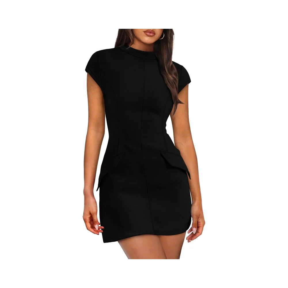 2025 New Workwear Mini Retro Dress Sleeveless Solid Color Dresses with Pockets Office Cocktail Commute-Ready Dress