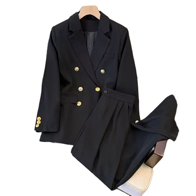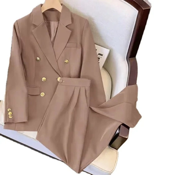 Women's Office Casual Two Piece Set Solid Color Formal Outfit Spring Autumn Coat Blazer Pants Button for Work Leisure OEM