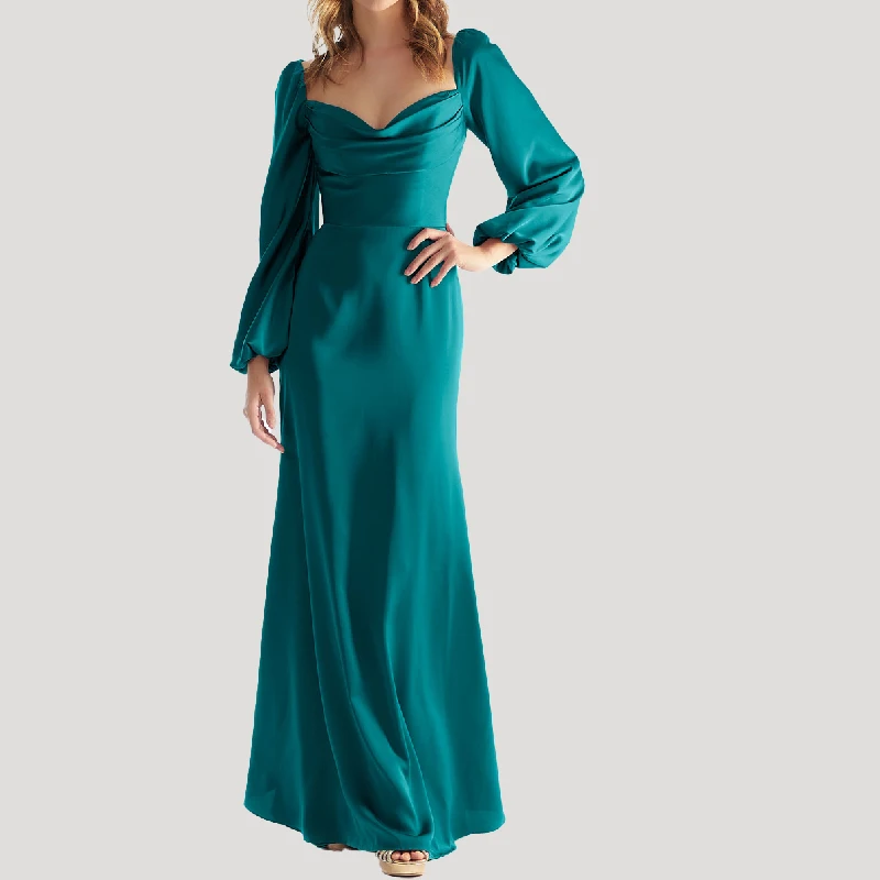 ZYHT 73902 Dark Green Blue Long Sleeve Simple Elegant Evening Dress Customize High End Women Clothing Manufacturer