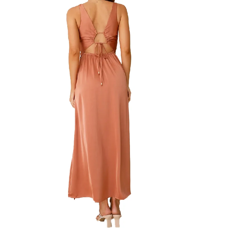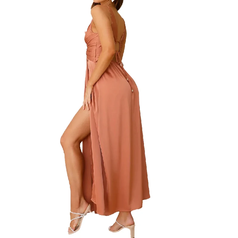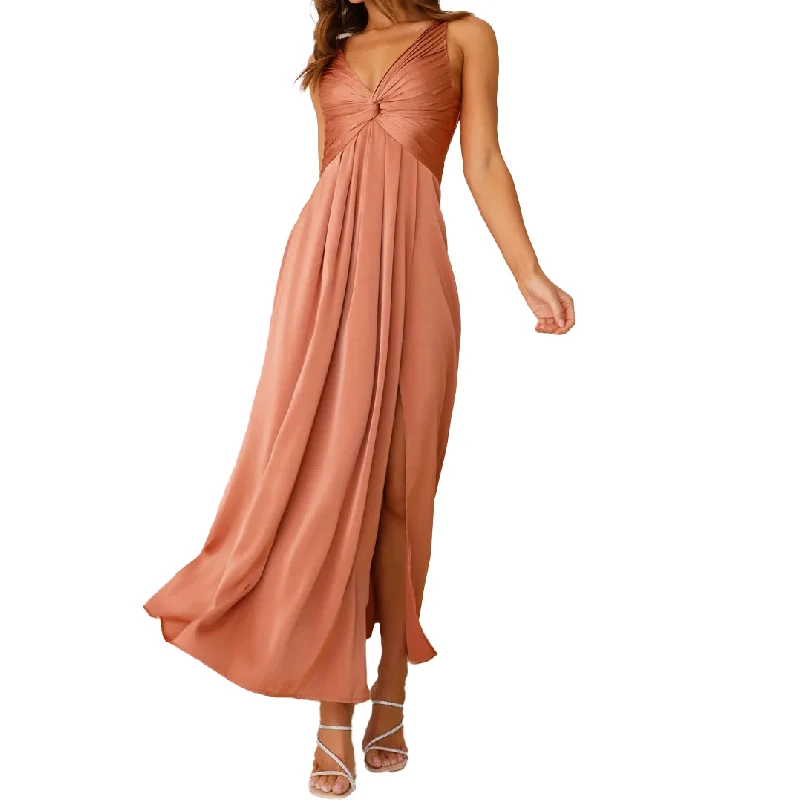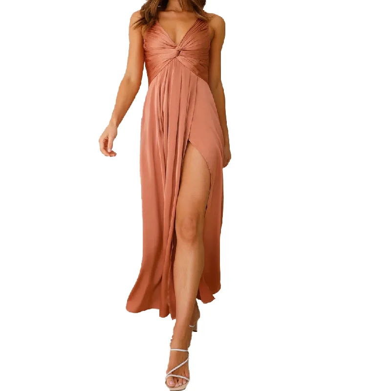 2025 New Arrival Sexy Sleeveless Twisted Front V-neck Side Slit Elastane Back Satin Bridesmaid Dress Women