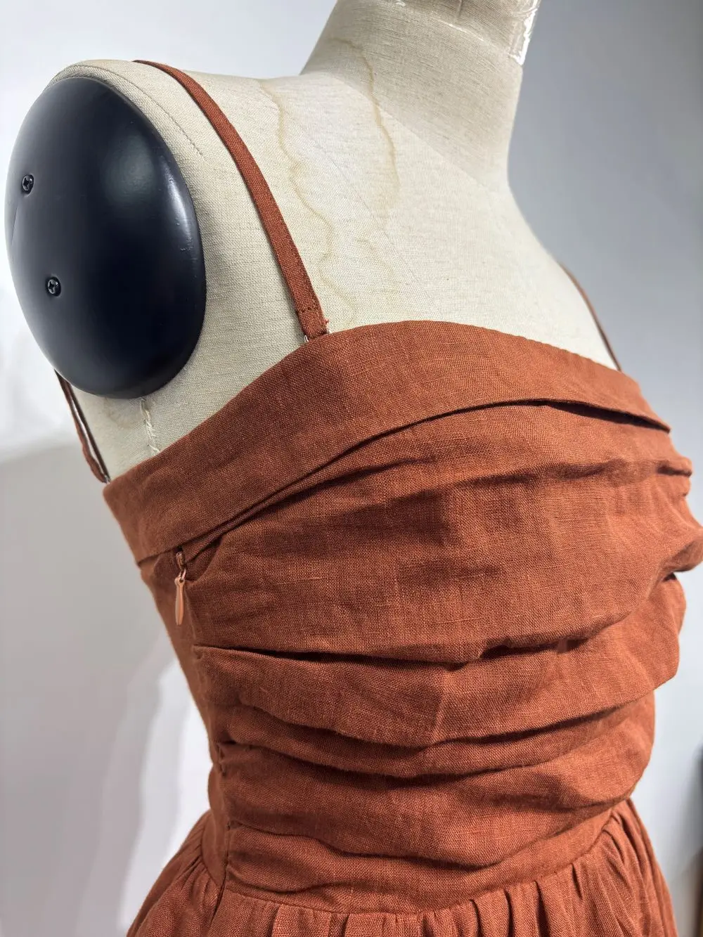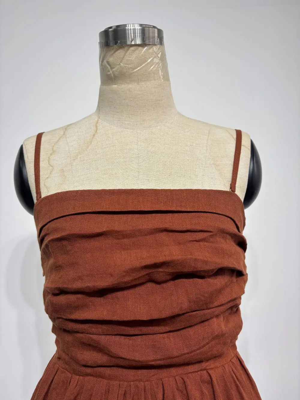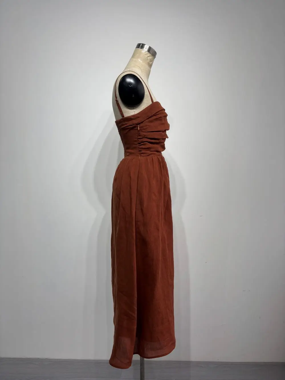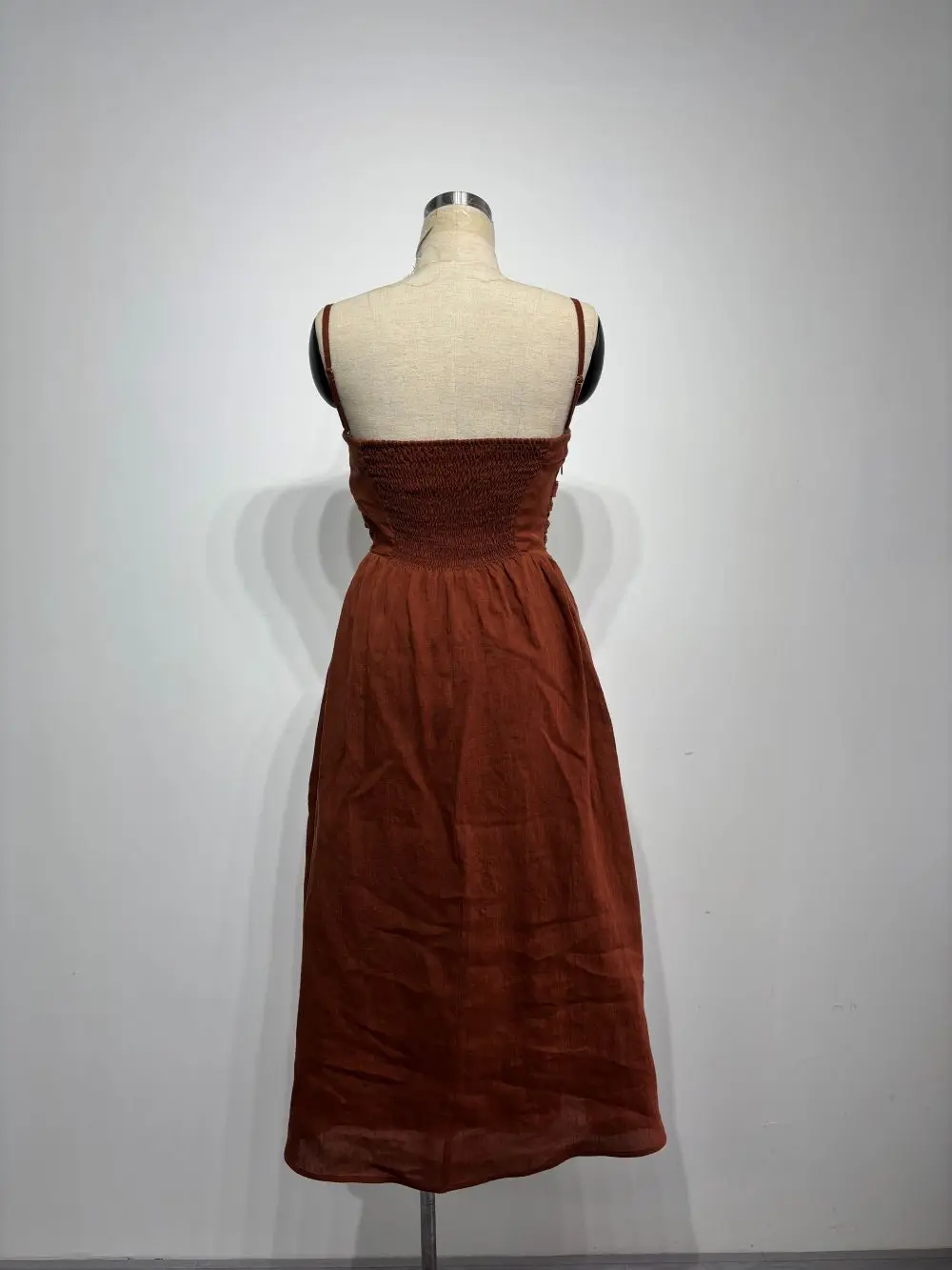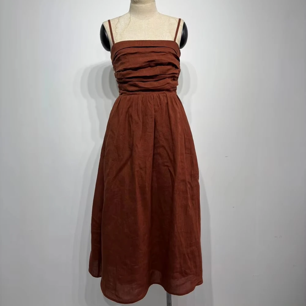 Clothing Manufacturers Custom Spaghetti Straps Ruched Smocked Back A-line Cotton Linen Tea Length Dresses With Slits For Women