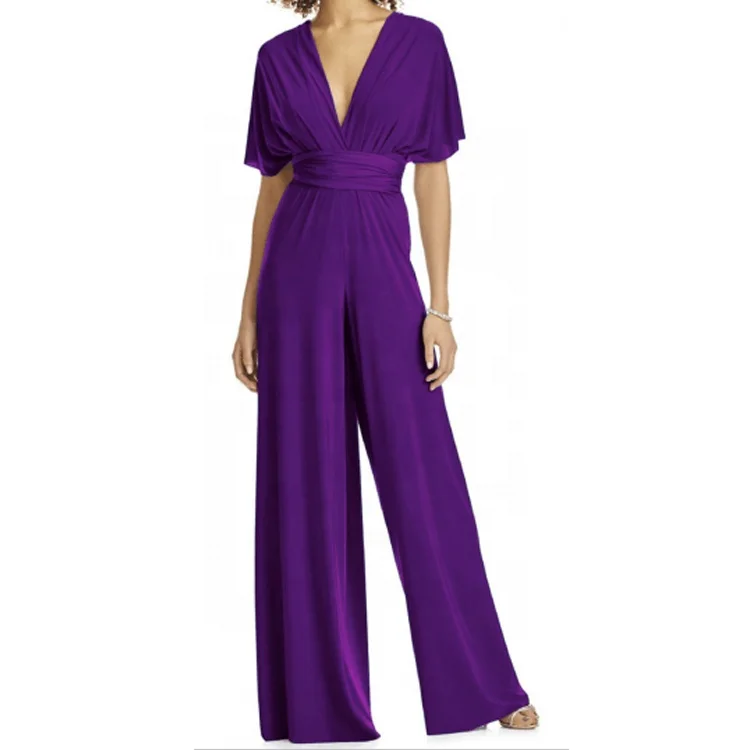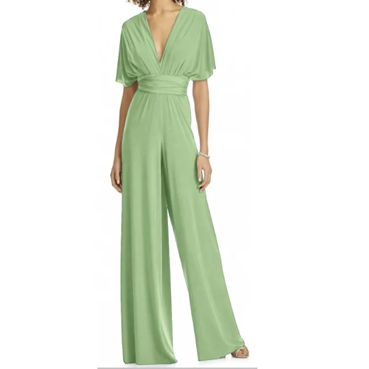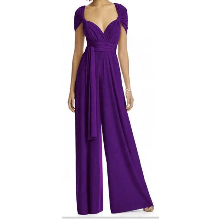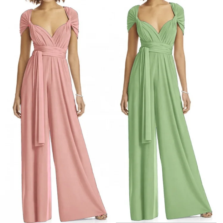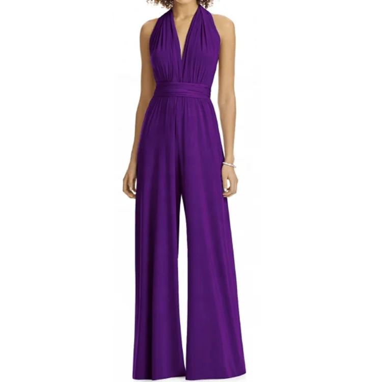Elegant Prom Wedding Wide Leg Halter Twist Wrap Convertible Infinity Multiway Wedding Bridesmaid Romper Jumpsuit for Women