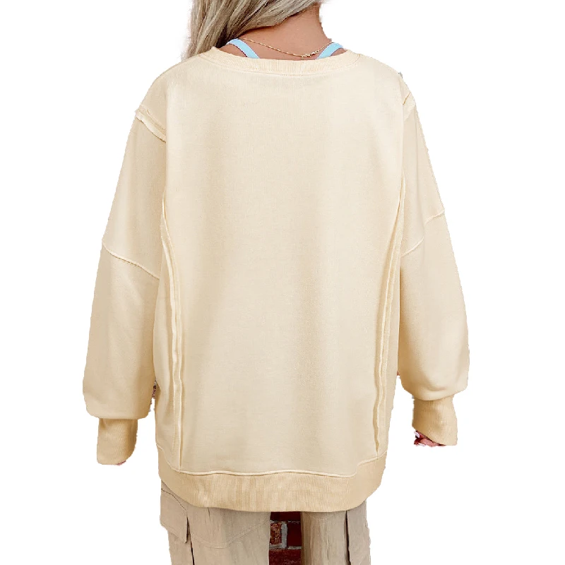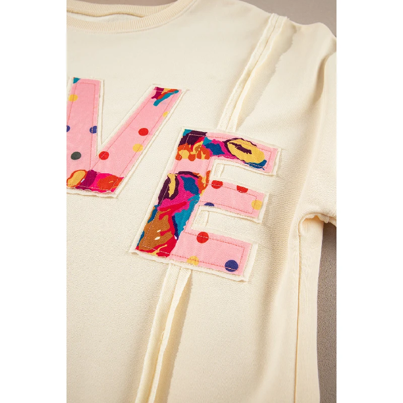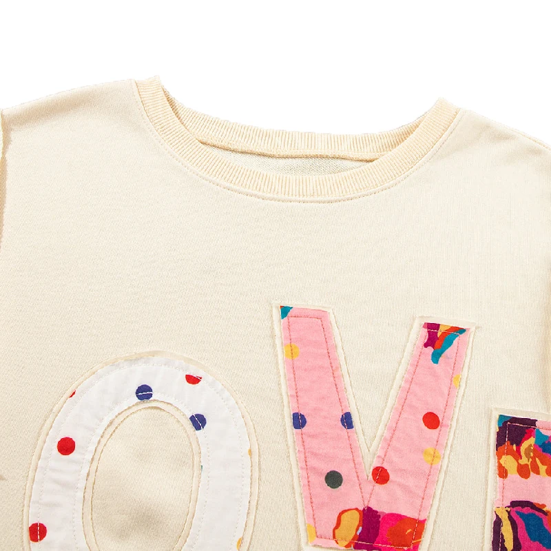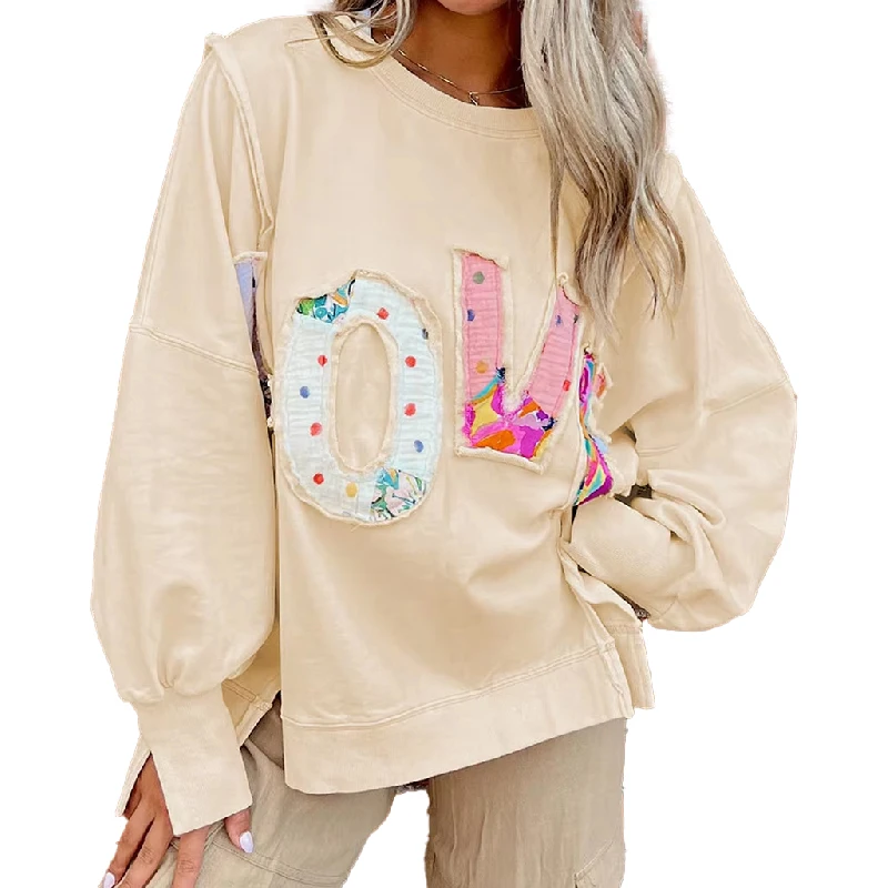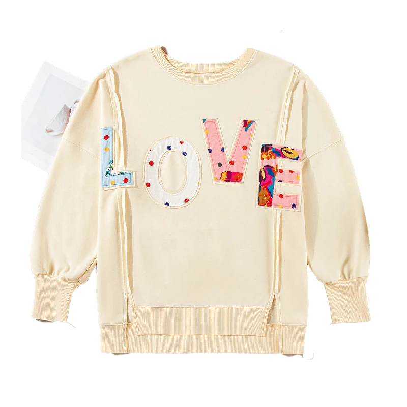 Casual Custom LOVE Patch Letter Graphic Cotton Loose Oversize Sweatshirt With Side Slit