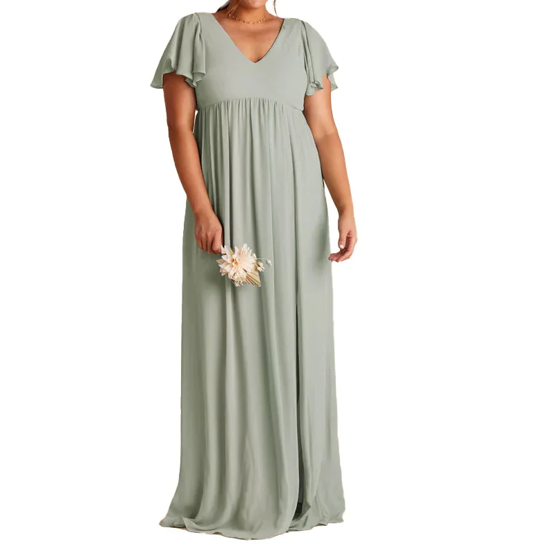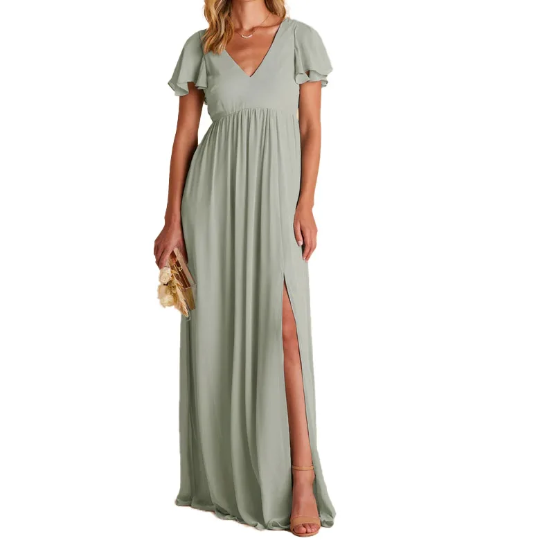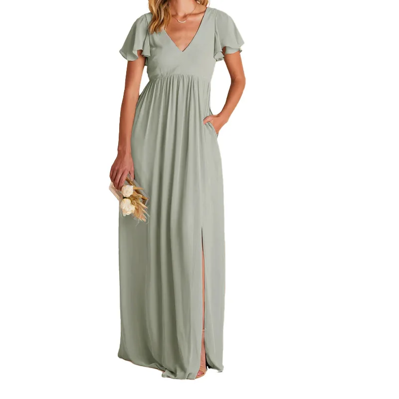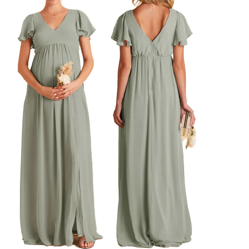 Elegant Flutter Sleeve V-neck Empire Waist Maternity Chiffon Bridesmaid Long Dresses