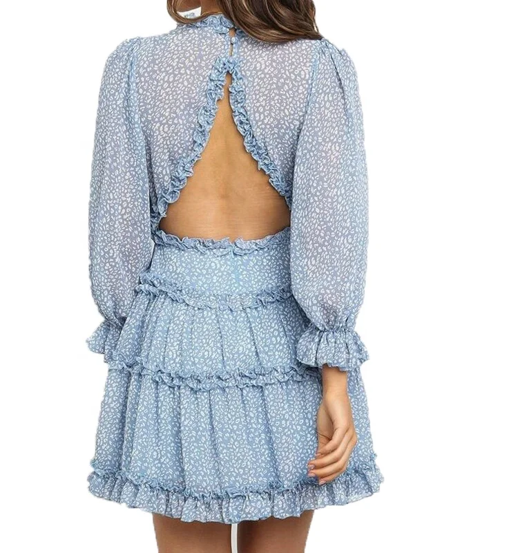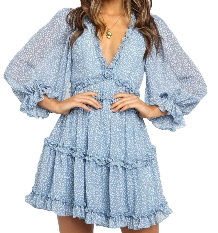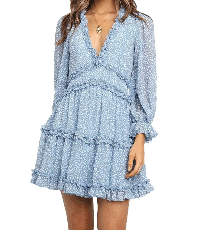 Indian Floral Printed Chiffon Boho Long Sleeve v Neck Kaftan Pullover Loose Beach Summer Fashion Clothing Women's Dress