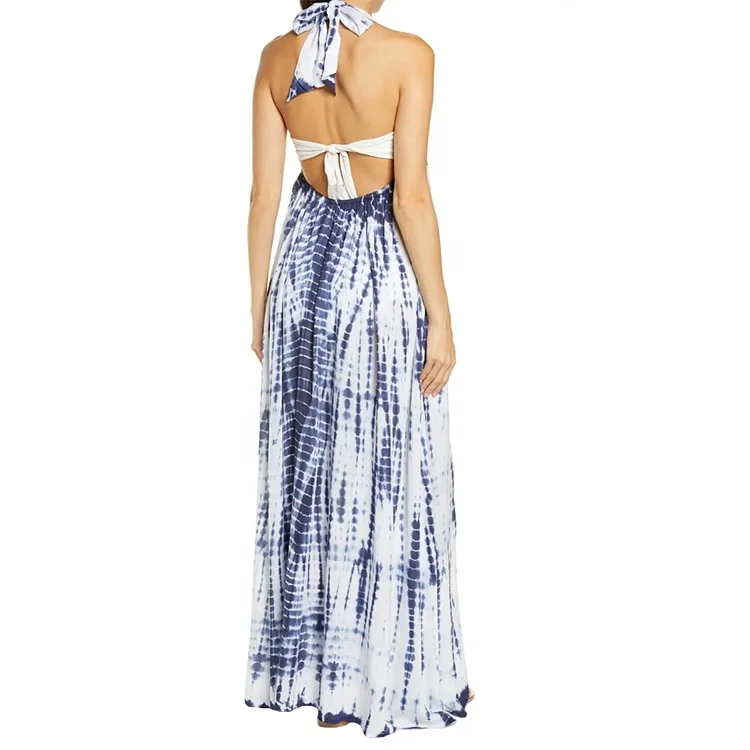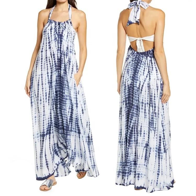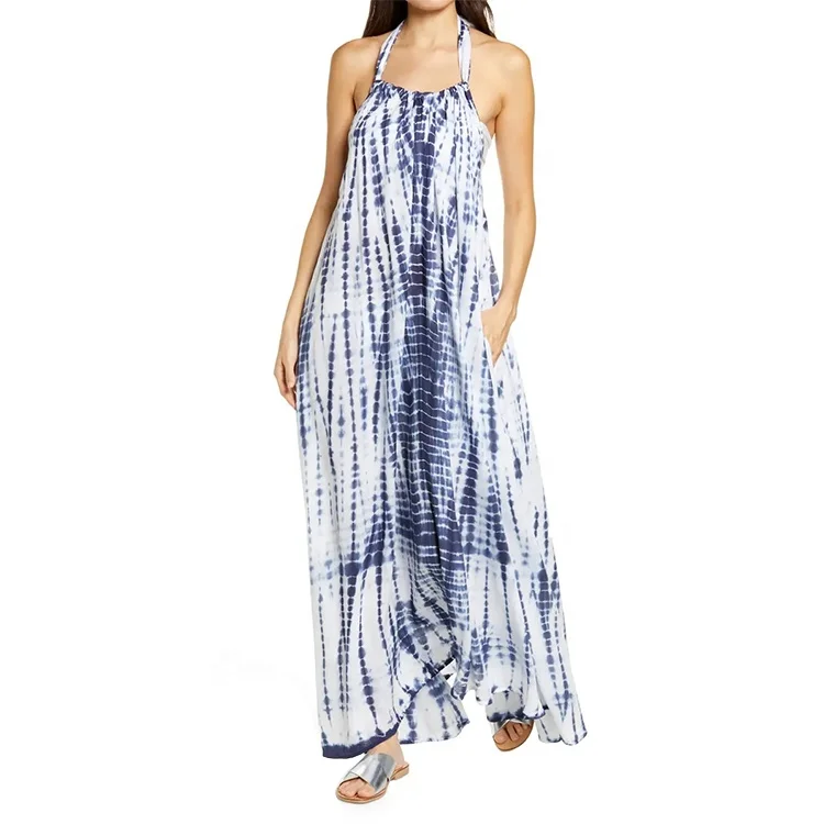Wholesale Women Oversize Halter Sleeveless Free One Size Tie Dye Summer Casual Beach Cotton Maxi Dress 2025
