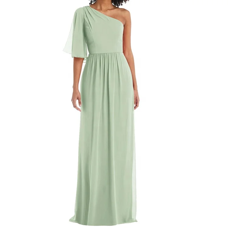 2025 Wholesale Women's Elegant Evening One-shoulder Bell Sleeve Chiffon Party Long Summer Bridesmaid Dresses