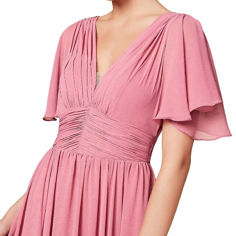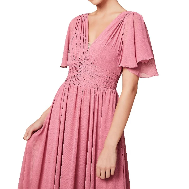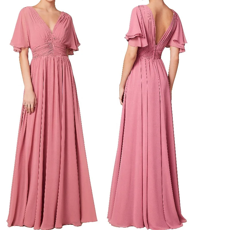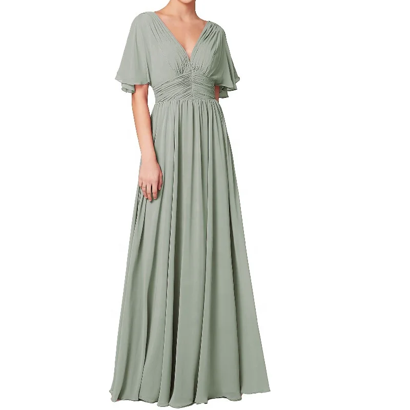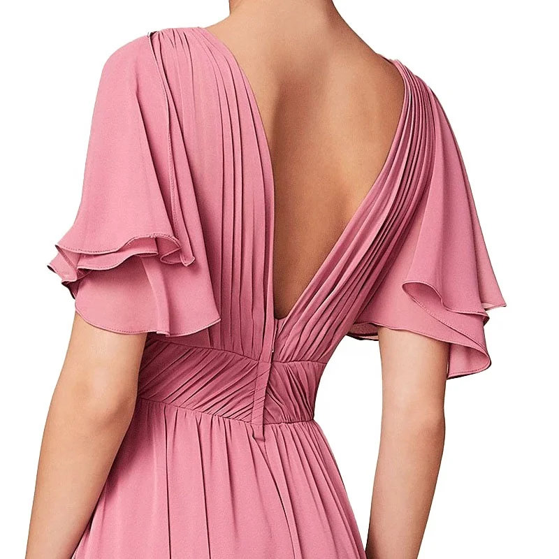 Plus Size Summer Beach Bohemian Vestido Flutter Sleeve Plunging V-neck Draped Chiffon Floor Length Bridesmaid Dresses 2025