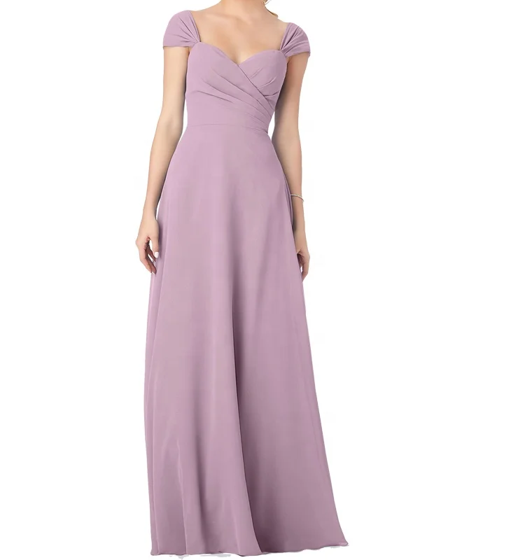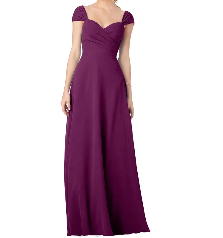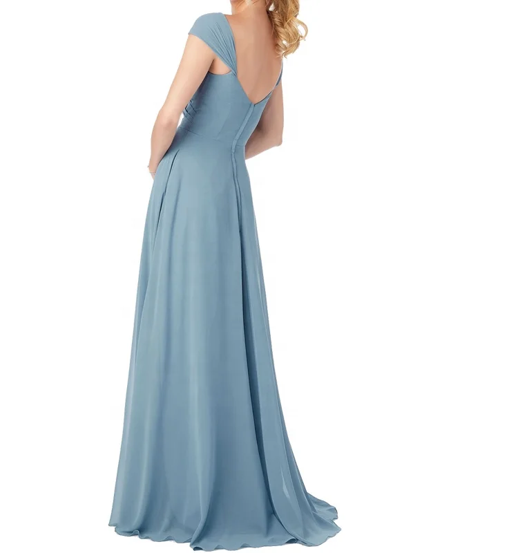 Classic Simple Sweetheart Cap Sleeve Teal Chiffon Bridesmaid Dresses Long