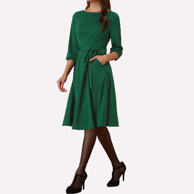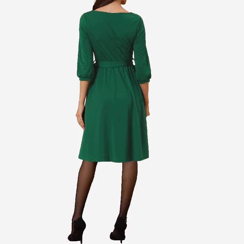 Half Sleeve A-line V-neck Pleated Women Wholesale Formal Business Dress
