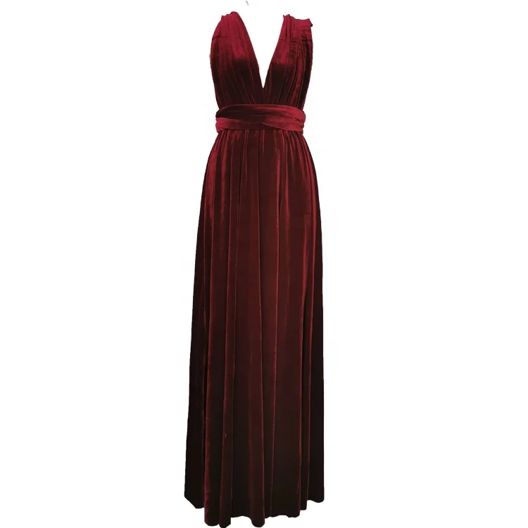 Infinity Wrap Convertible Winter Party Evening Dresses Red Green Velvet Dresses for Women Evening Pictures of Long Gown