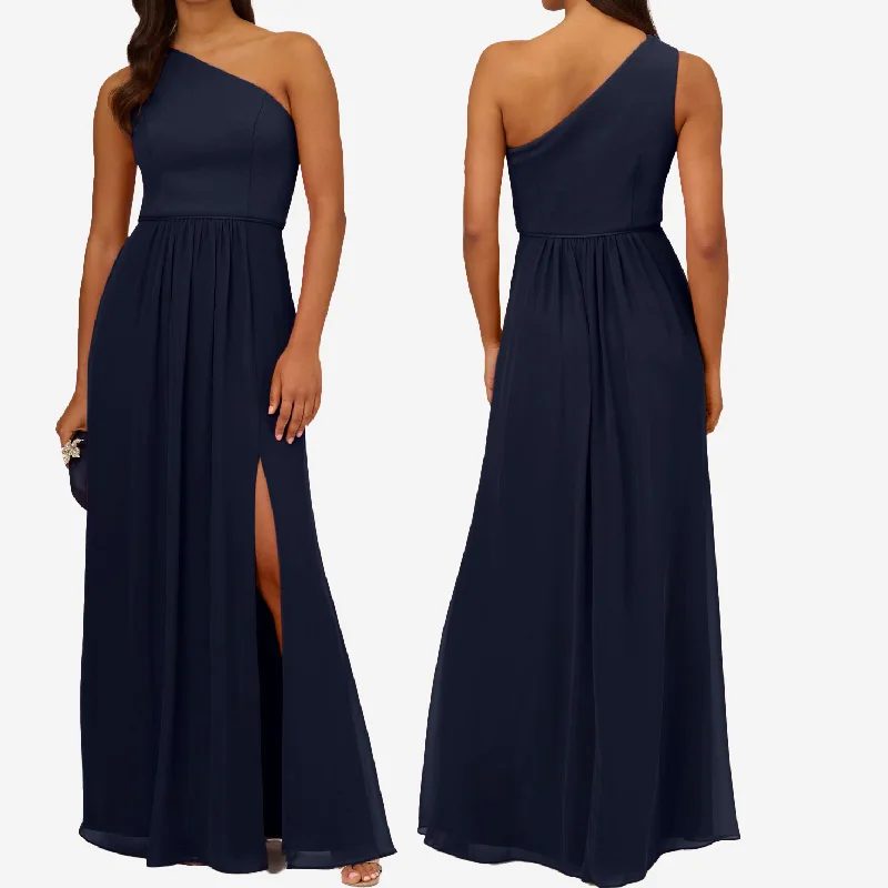 Wholesale Women One Shoulder Elegant Long Summer Evening Formal with Draped Front Split Wedding Bridesmaid Prom Women Dress