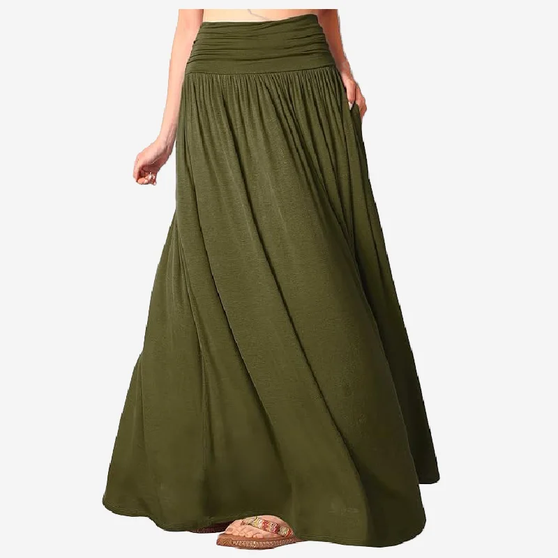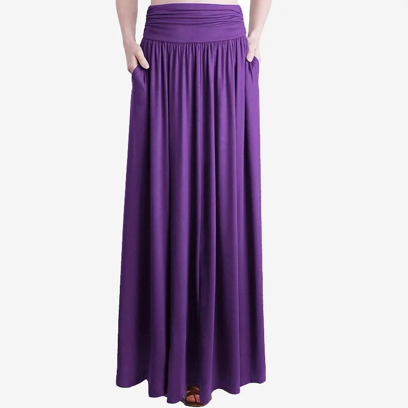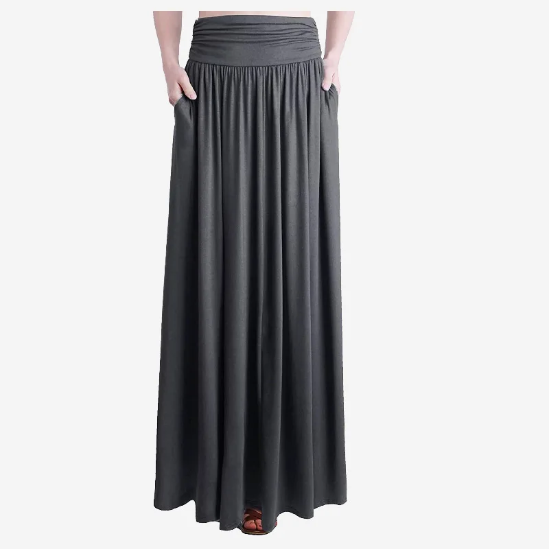 Women's Fold Over High Waist Shirring Maxi Skirt Plus Size Jersey Gypsy Hippie Long Skirts with Pockets