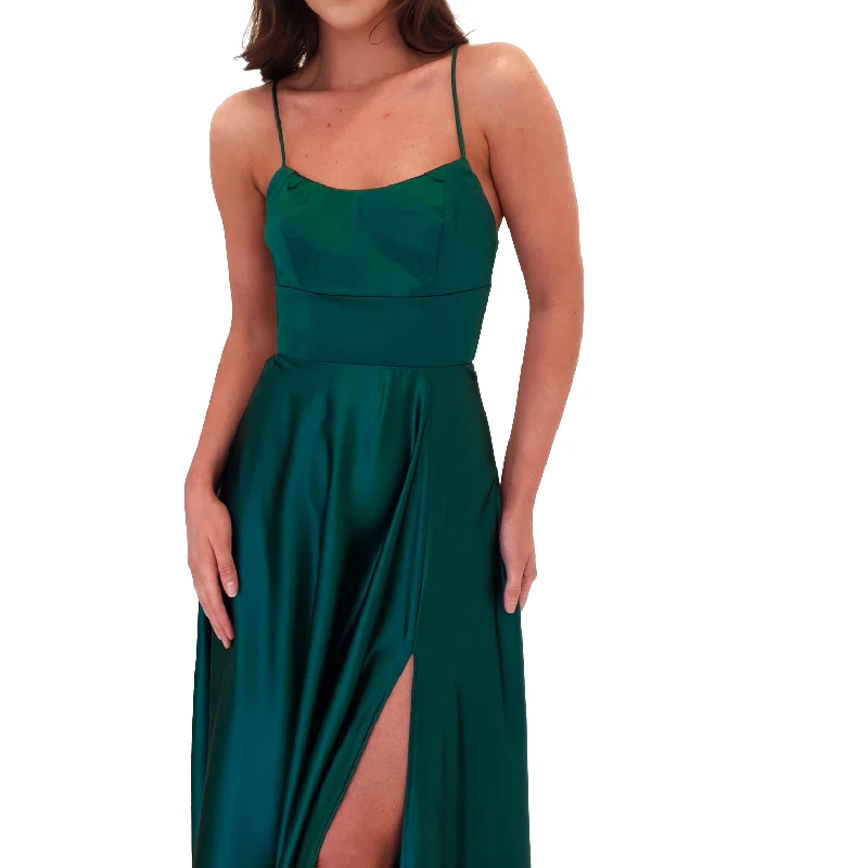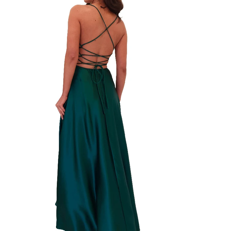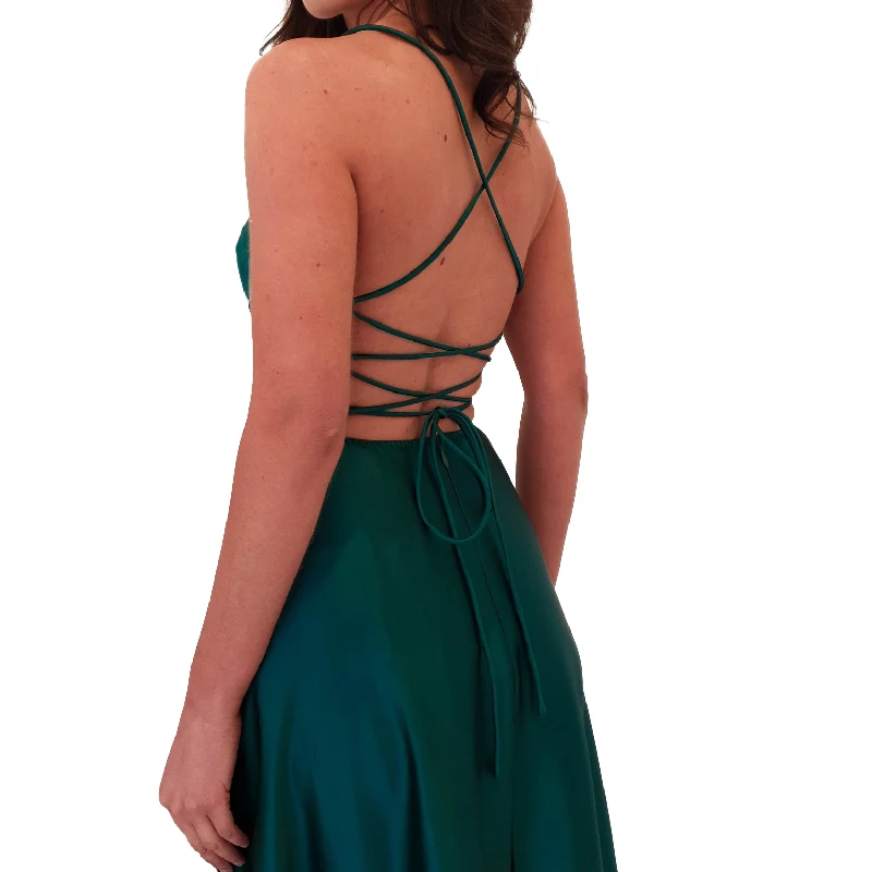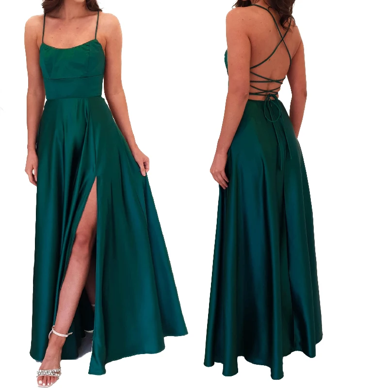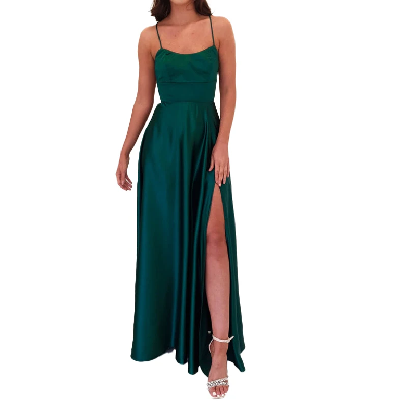 Sexy Elegant Strappy Criss-cross Backless Front Slit Full Circle Skirt Floor Length Satin Bridesmaid Dresses
