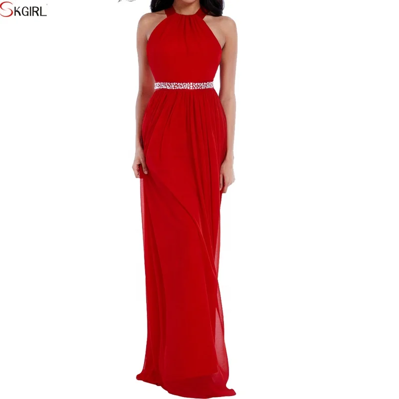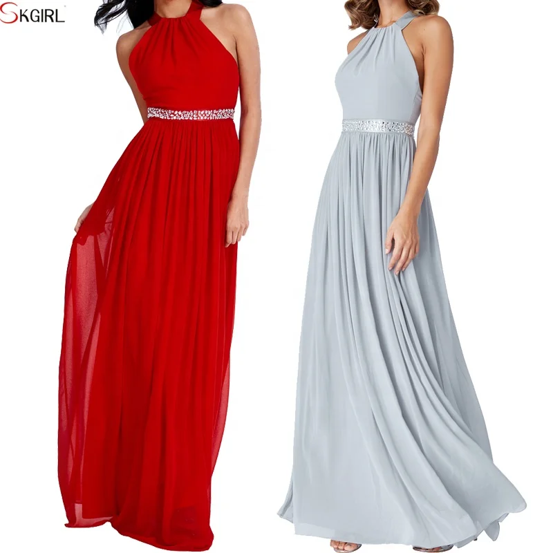 Beaded Open Front Back Halter Neck Elegant Women Wear Plus Size Evening Chiffon Dresses 2022 Long