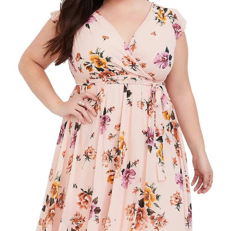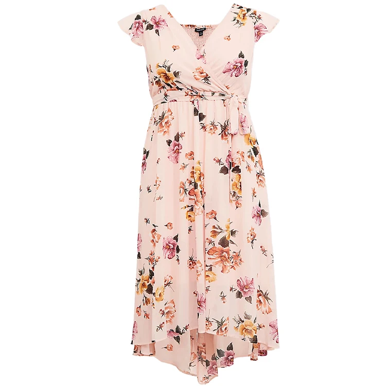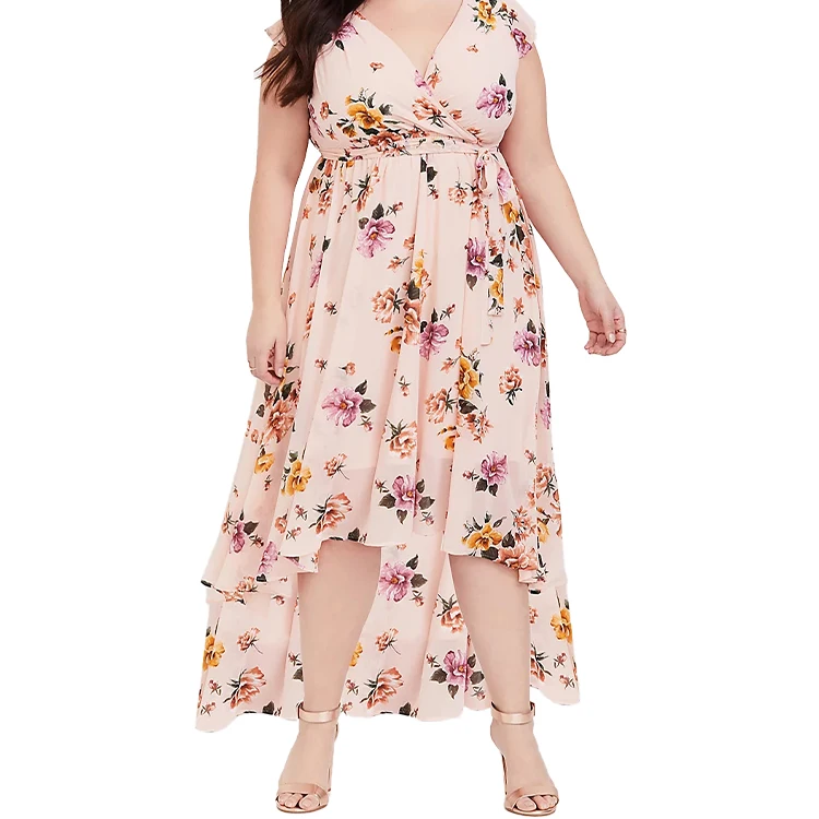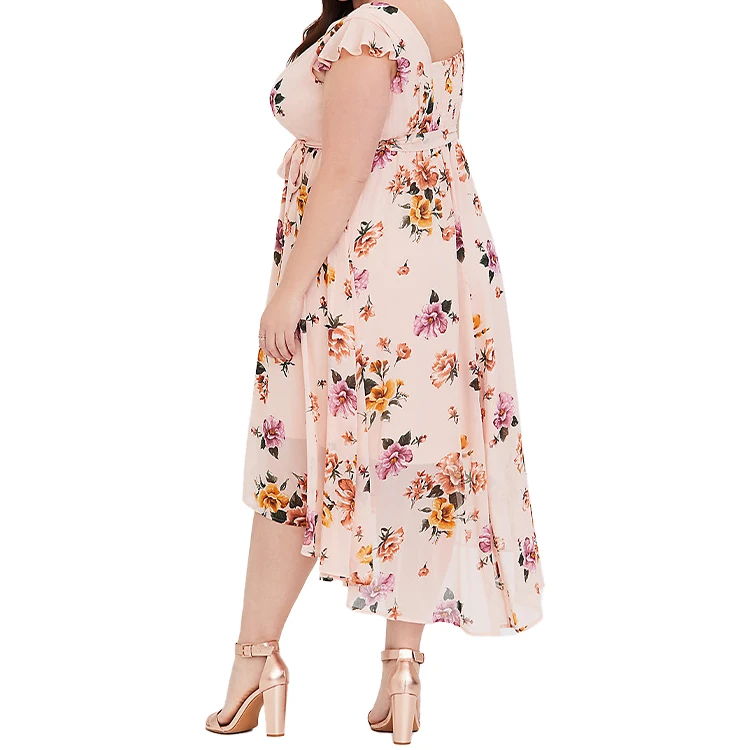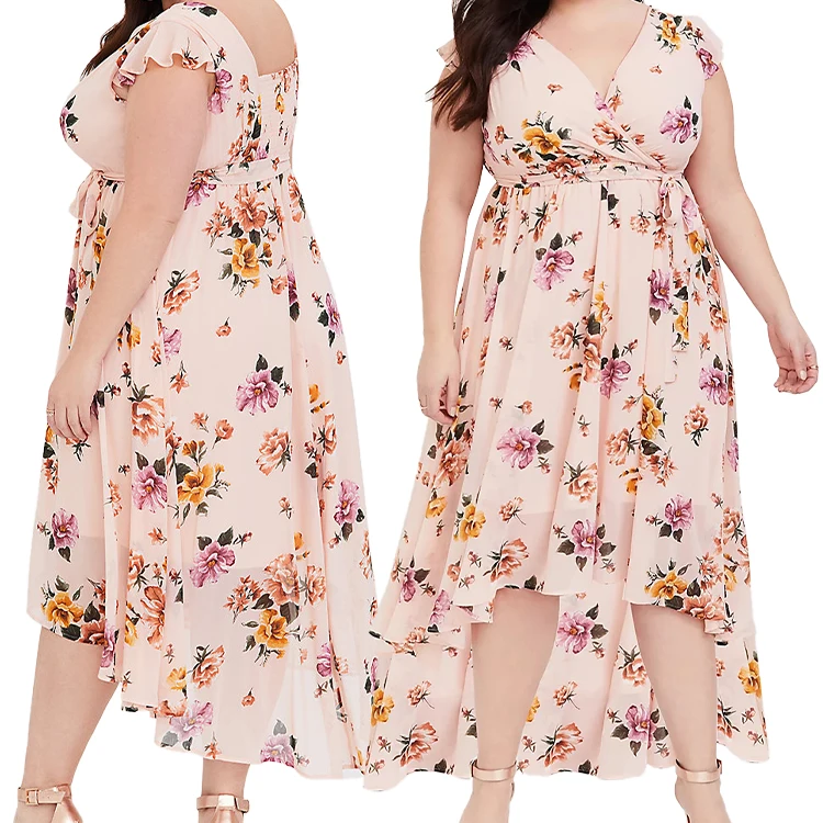 Cap Floral Plus Size Dresses Sleeve V-neck Elastic Waist High Low Chiffon 4xl 5xl 6xl 7xl Women Summer Dress Casual Dresses
