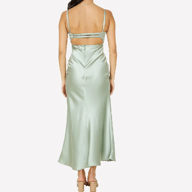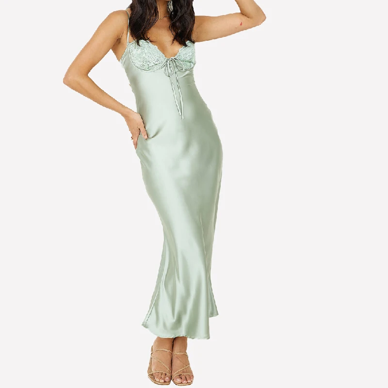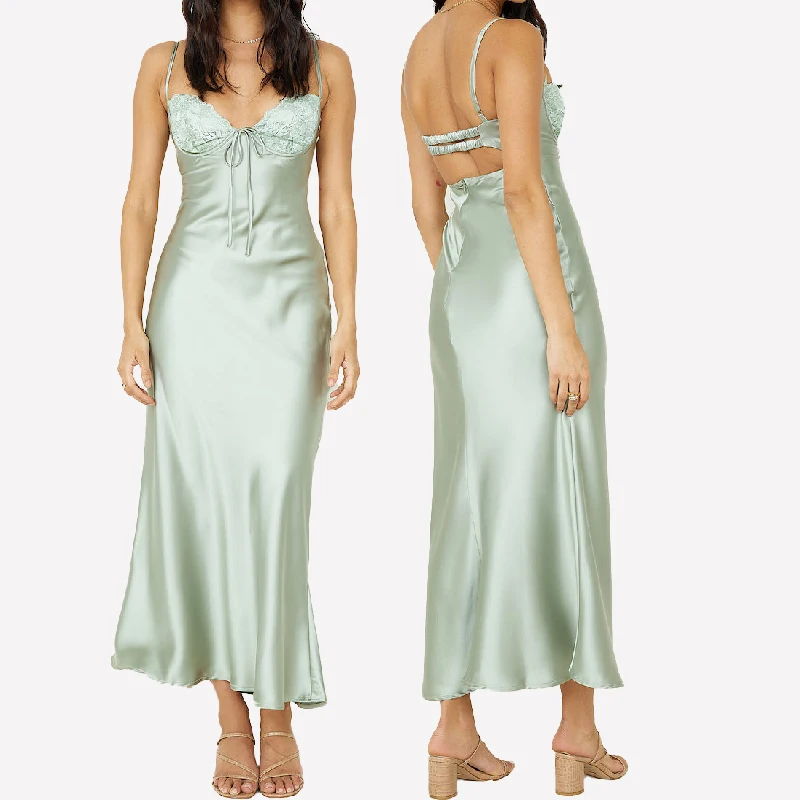Sexy Elegant Spaghetti Straps Lace Bra Corset Midi Satin Bridesmaid Dresses with Elastic Band Back