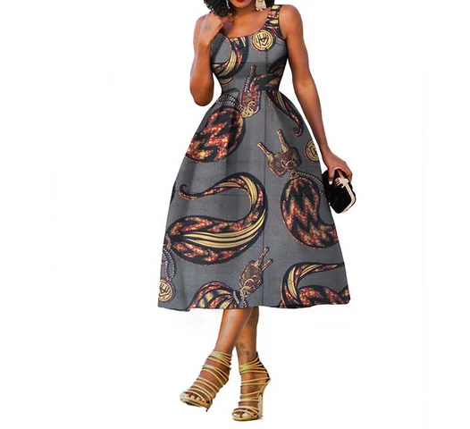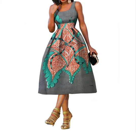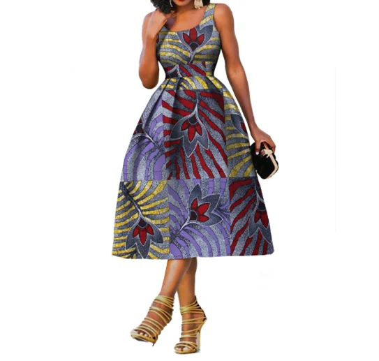 2022 China Wholesaler Woman Elegant African Skater Midi Party Ankara African Wax Dress