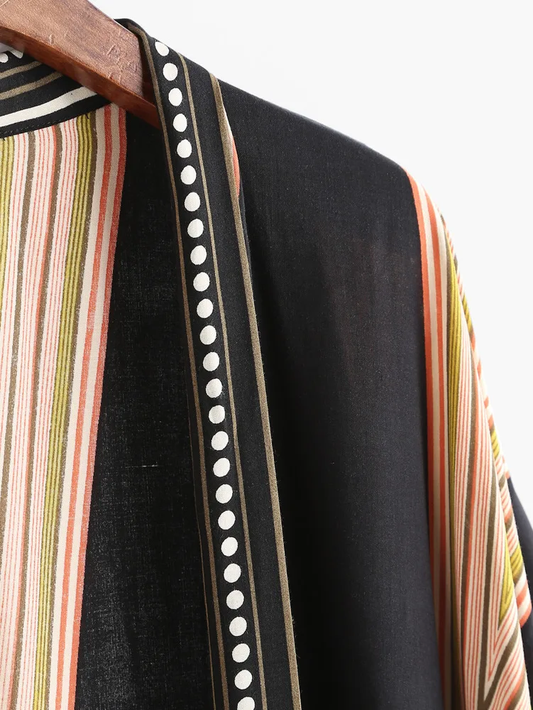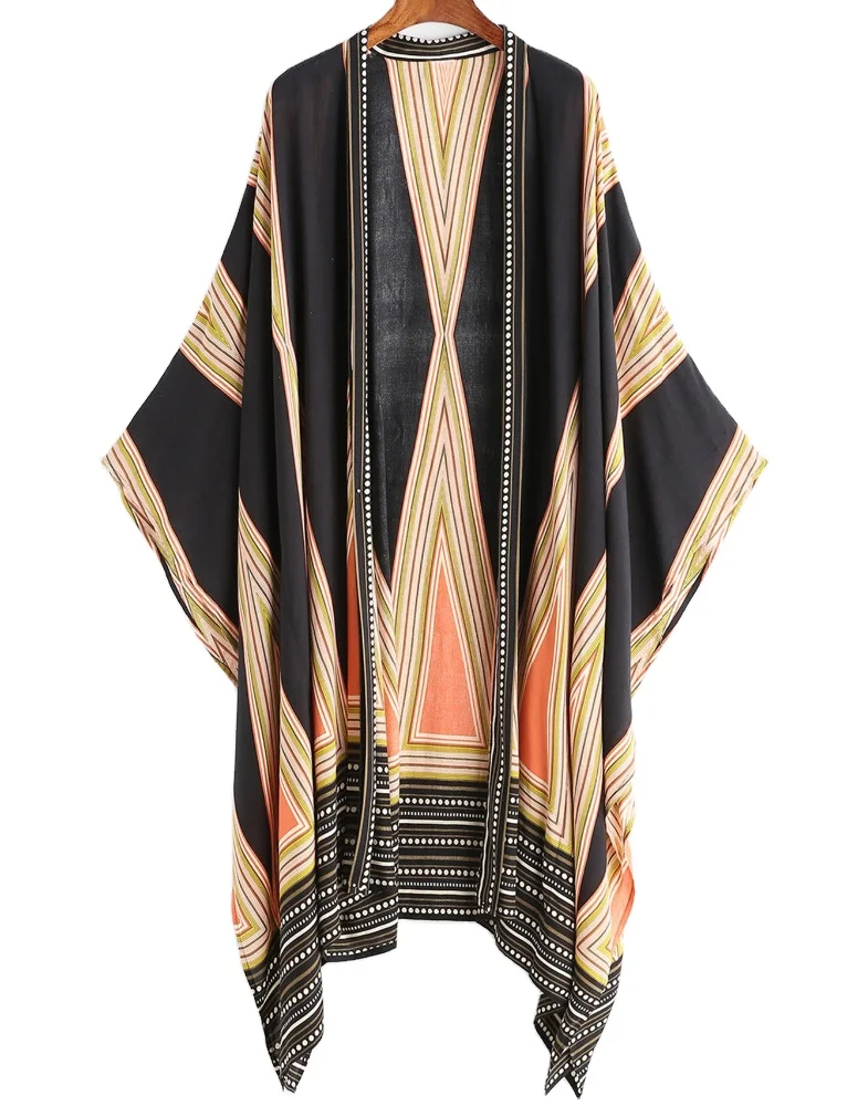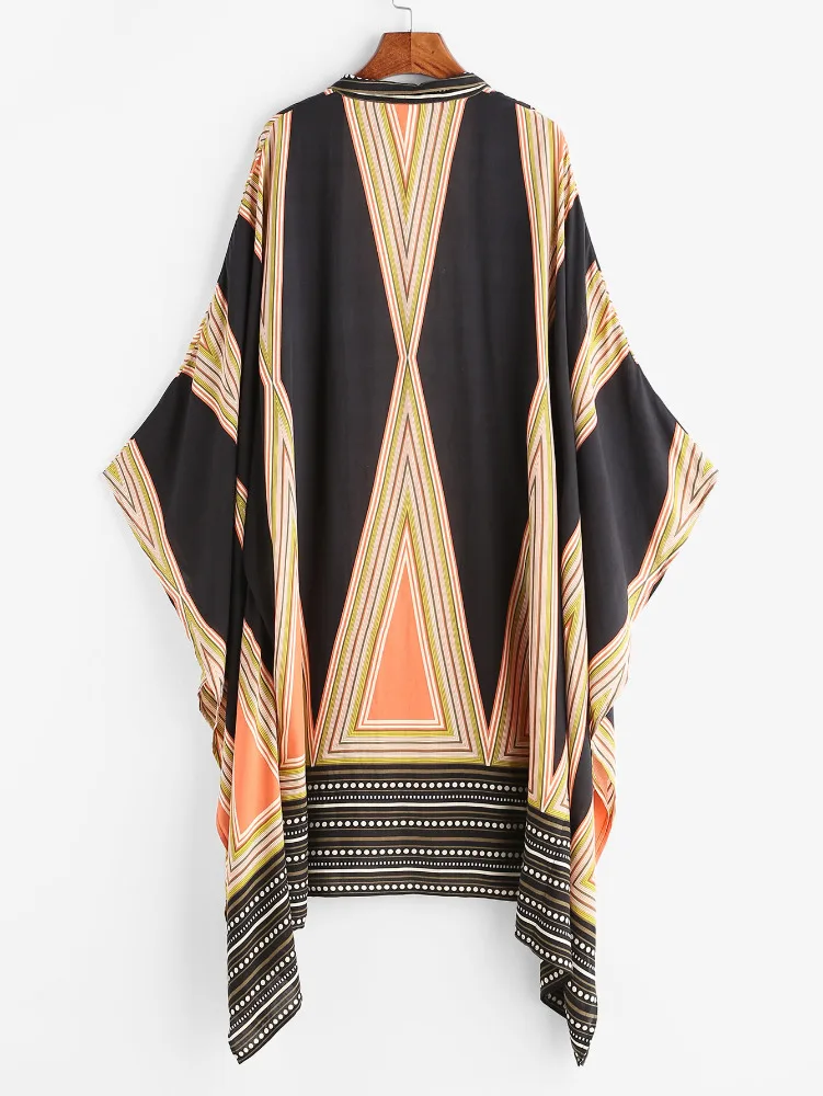 2022 Wholesale Chinese Clothing OEM Plus Size Summer Casual Women Loose Design Geo Print Kimono Open Jacket Kimono