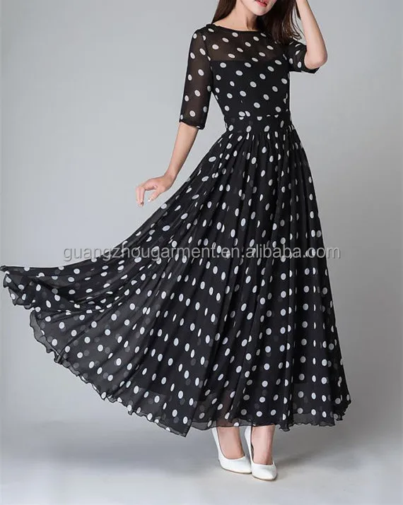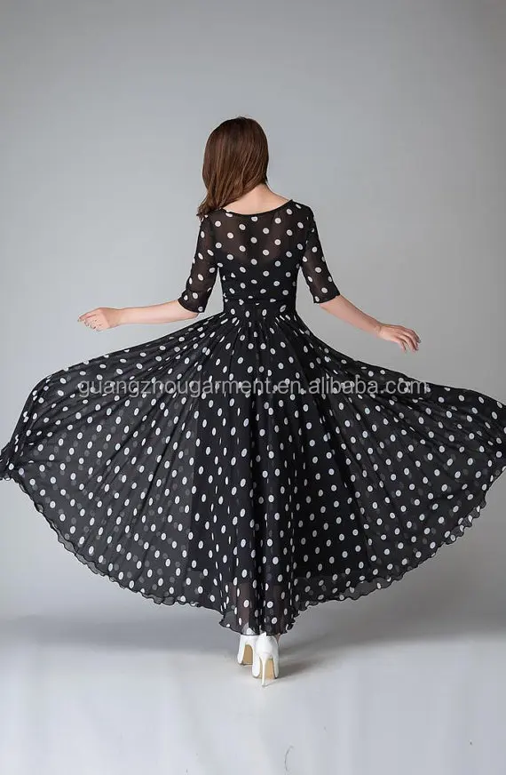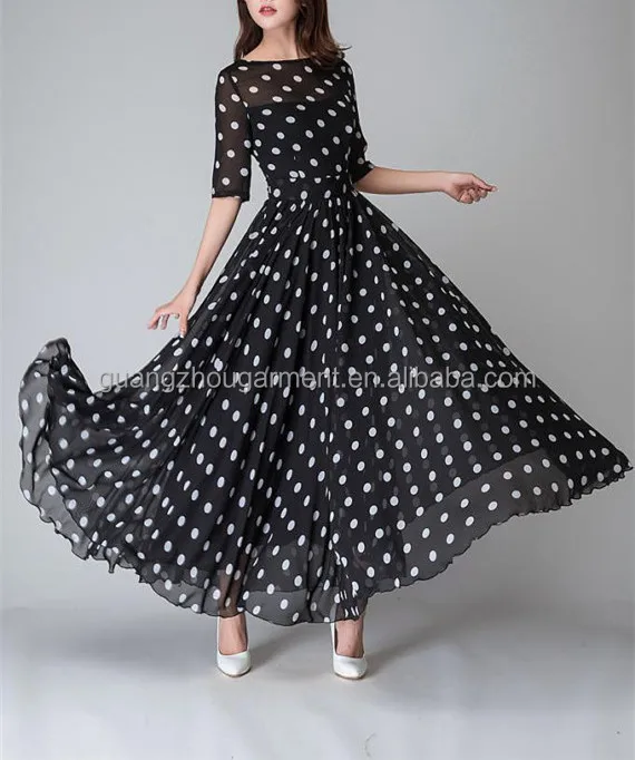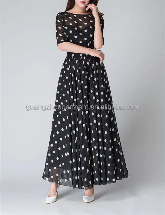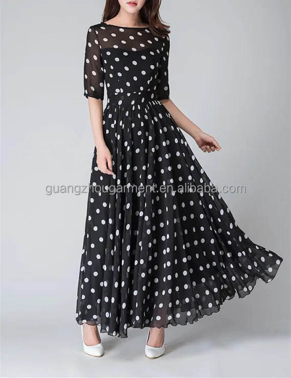 2022 Wholesale Women Long Summer Casual Elegant Casual Women Black White Polka Dot Aline Chiffon Maxi Dress