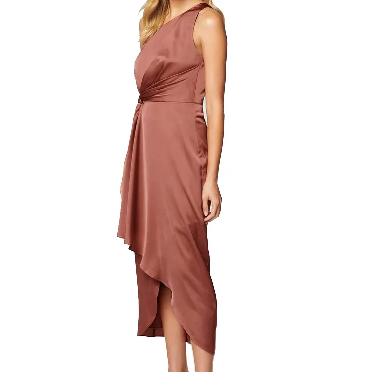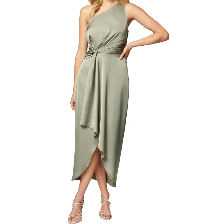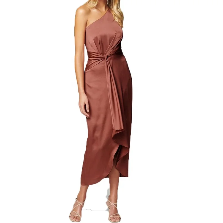 ZYHT 73963 Matte Satin Printed Geometric Pattern Maxi Women Asymmetric One Shoulder Ruched Hem Women Dress