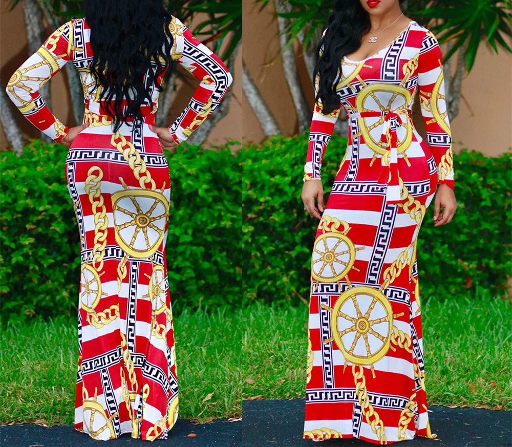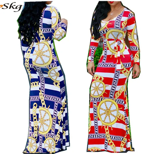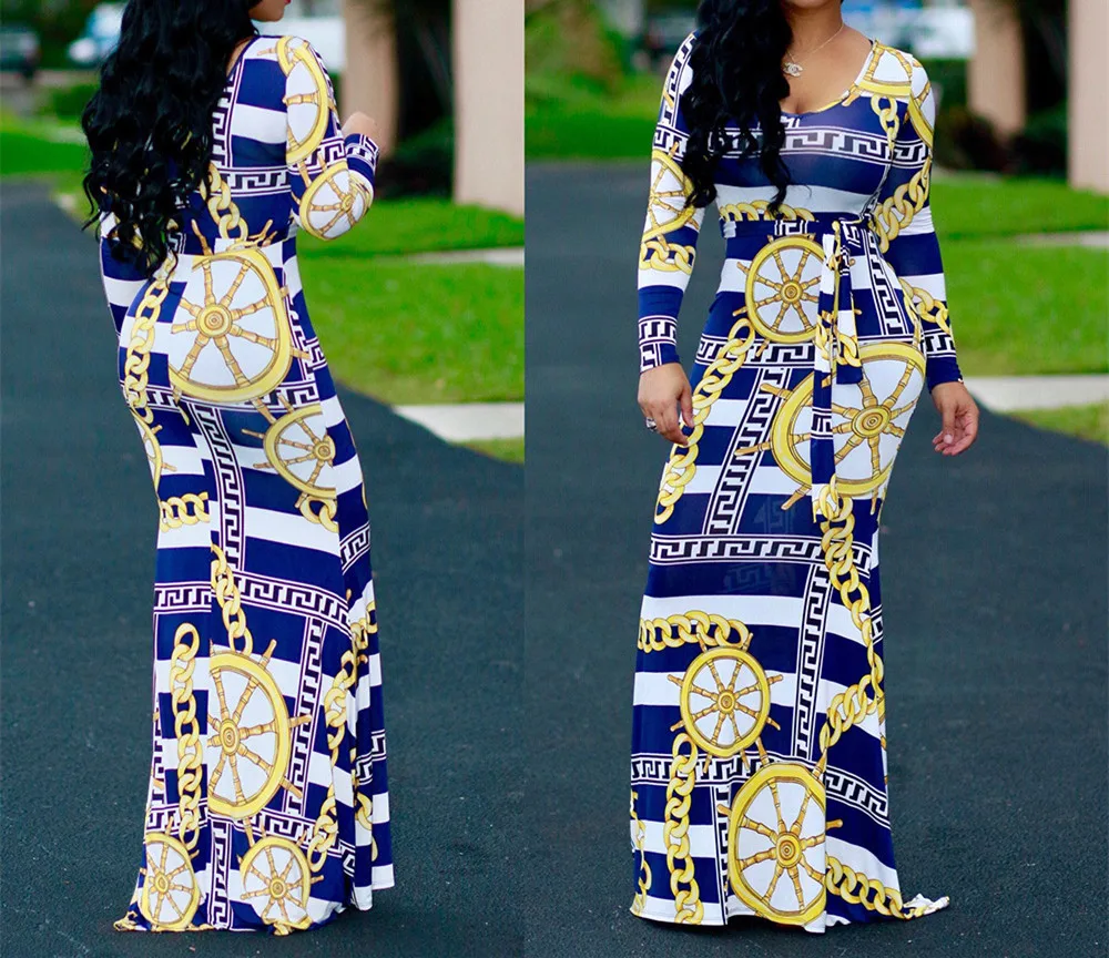 New African Casual Long Sleeve Bodycon Dashiki Dress Designs