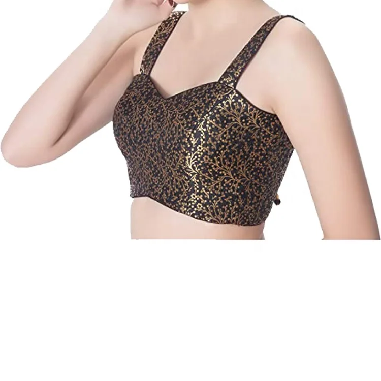 Sexy Spaghetti Strap Hollow Out Women Western Latest Bridal Saree Blouse Designs