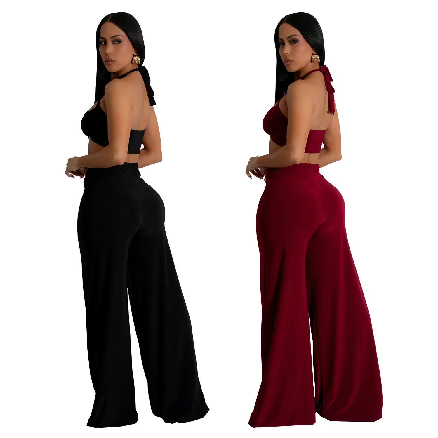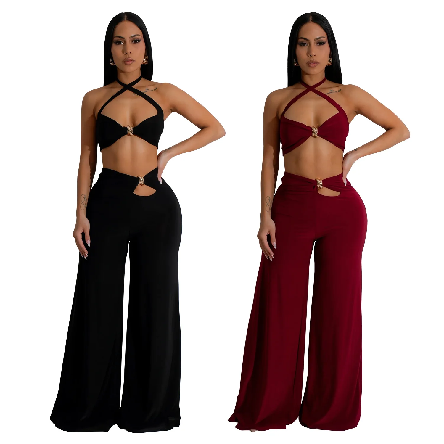 Fashion Sexy Halter Neck Backless Women's Wear Two Piece Set of Tops and Pants