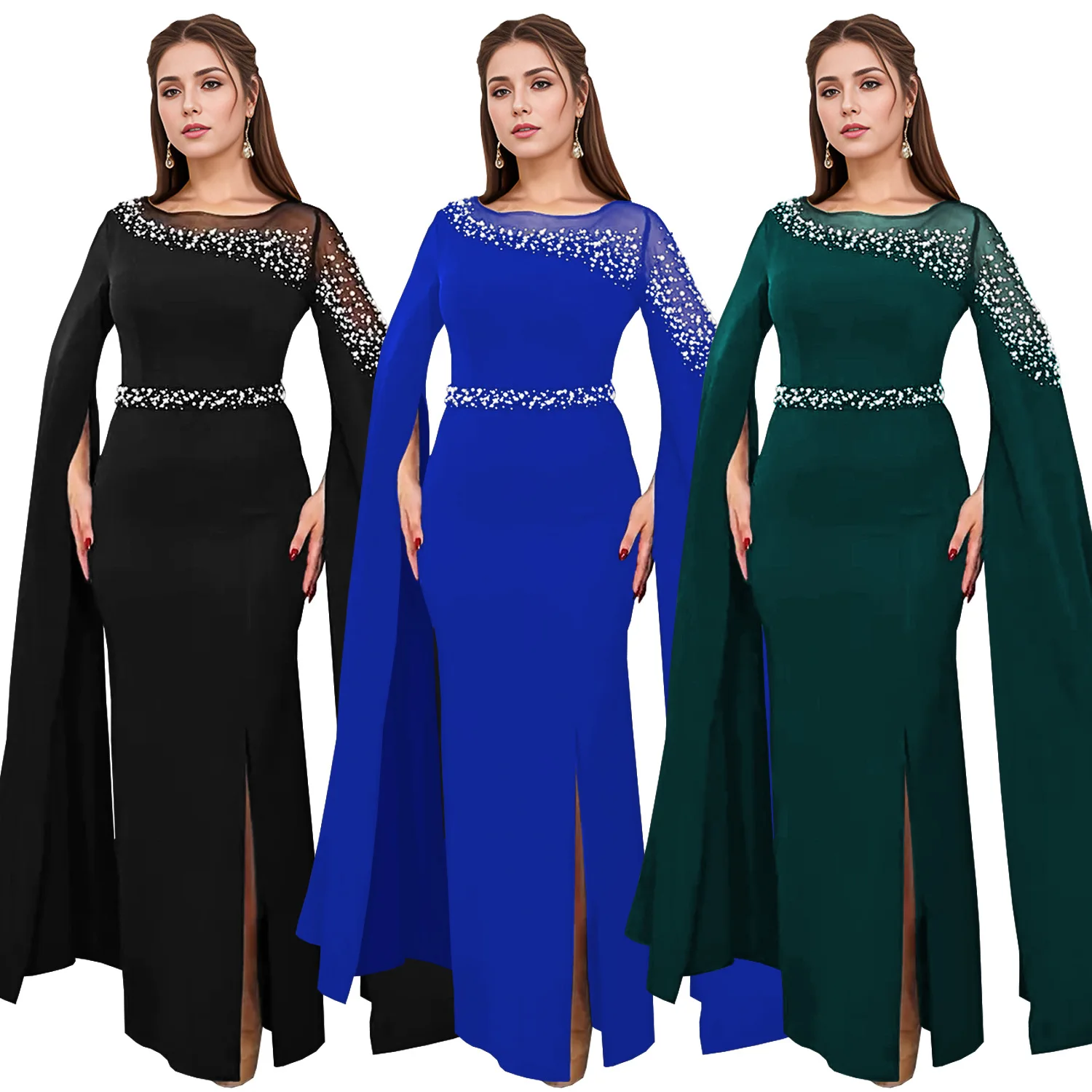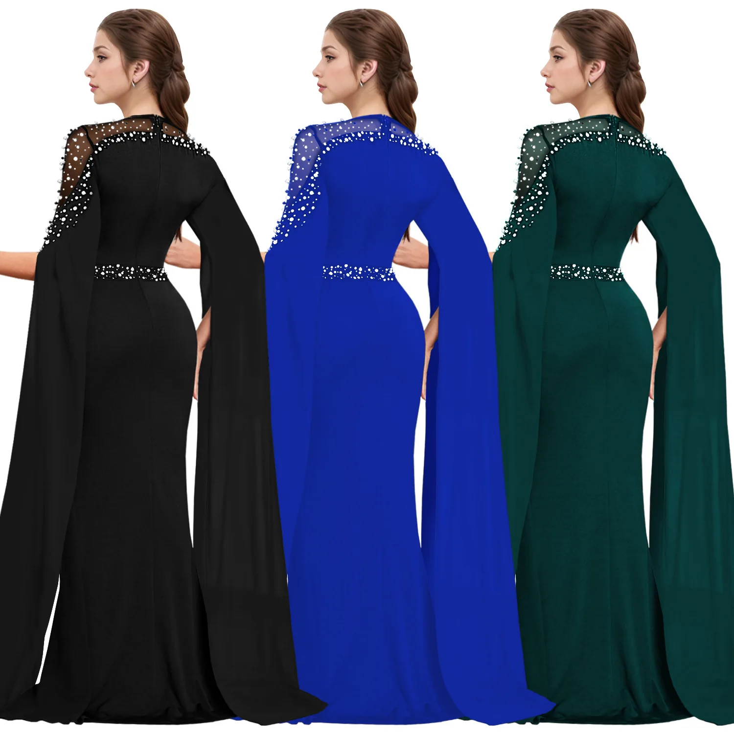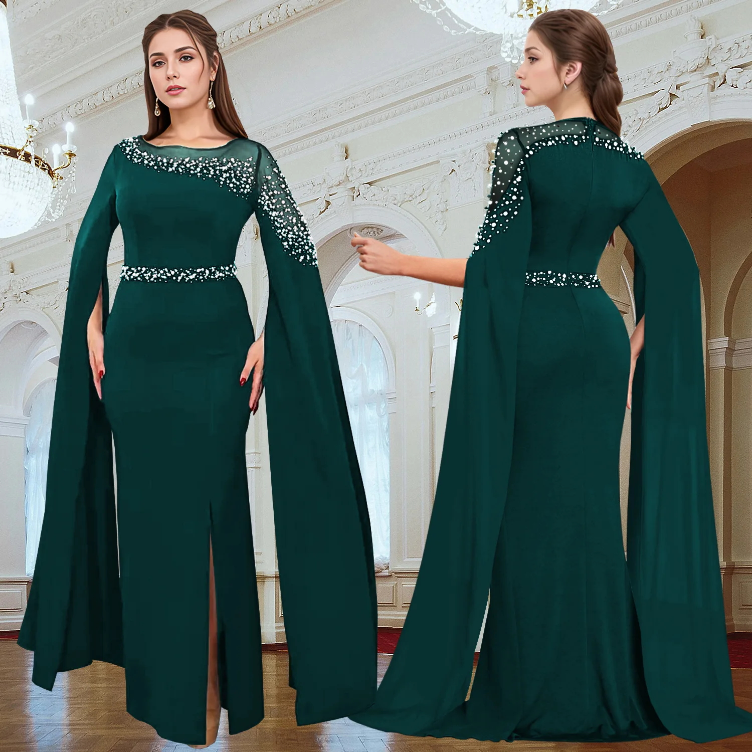ZYHT 73902 Dark Green Blue Long Sleeve Simple Elegant Evening Dress Customize High End Women Clothing Manufacturer