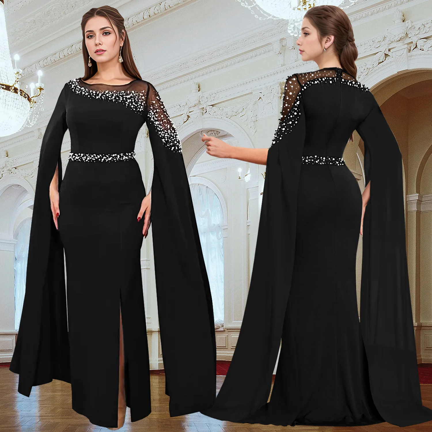 New Middle East Dubai Abaya Sequined Beading Long Sleeves Abaya Women Muslim Dress for Party