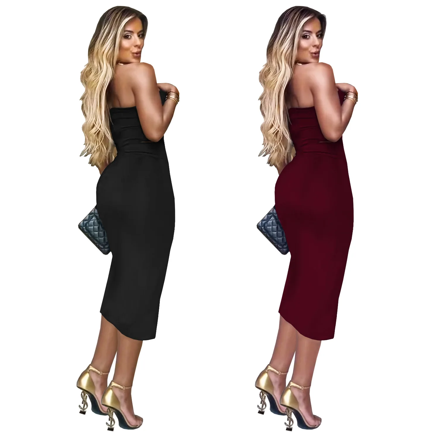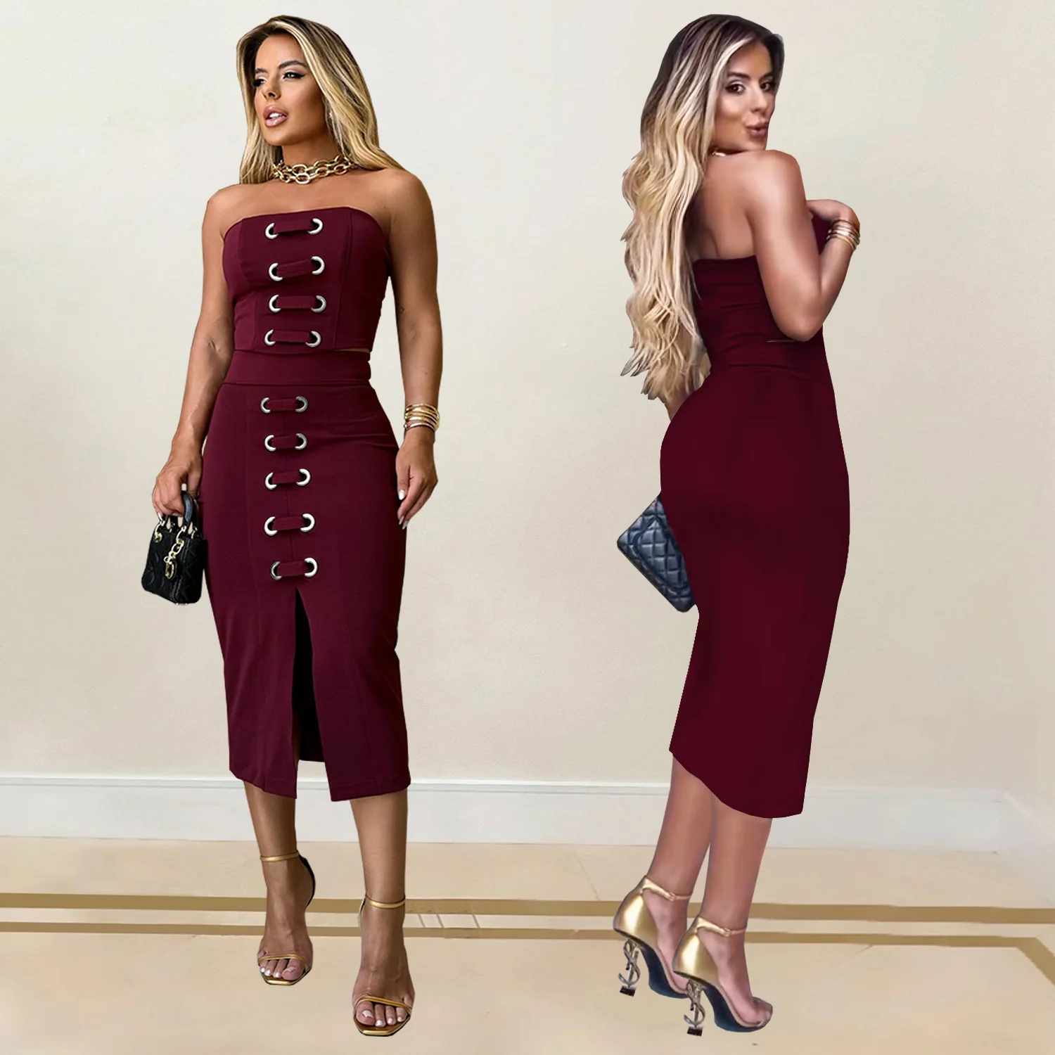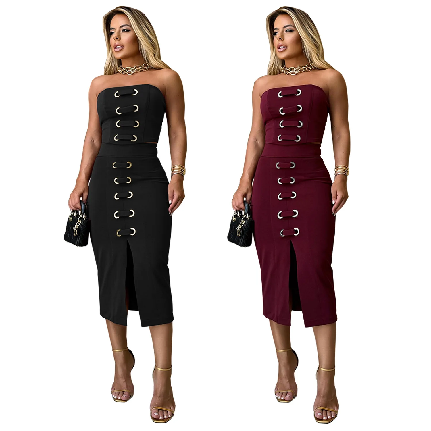 Sexy Strapless Tube Tops Women Summer Clothes 2 Piece Set Sleeveless Sexy Casual Dresses Hollow Out Party Dress