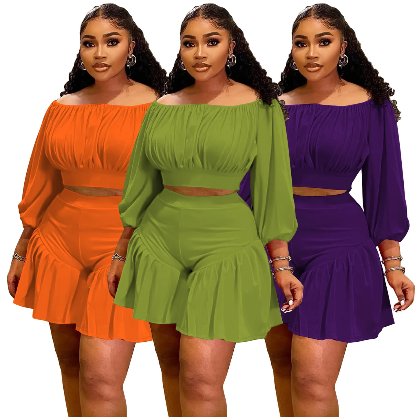 In Stock Plus Size Two Piece Set Solid Color Casual Short Set for Big Size Women Set