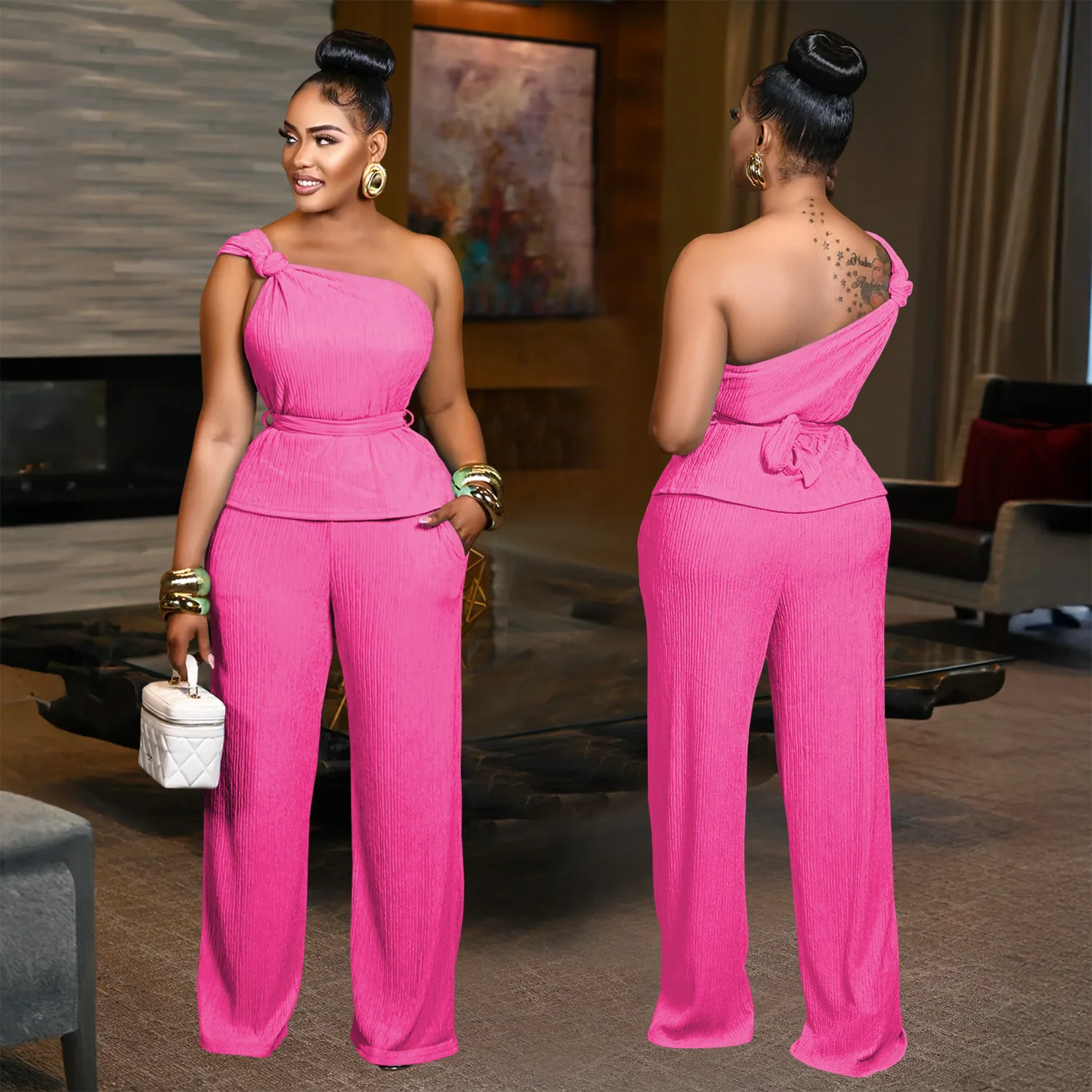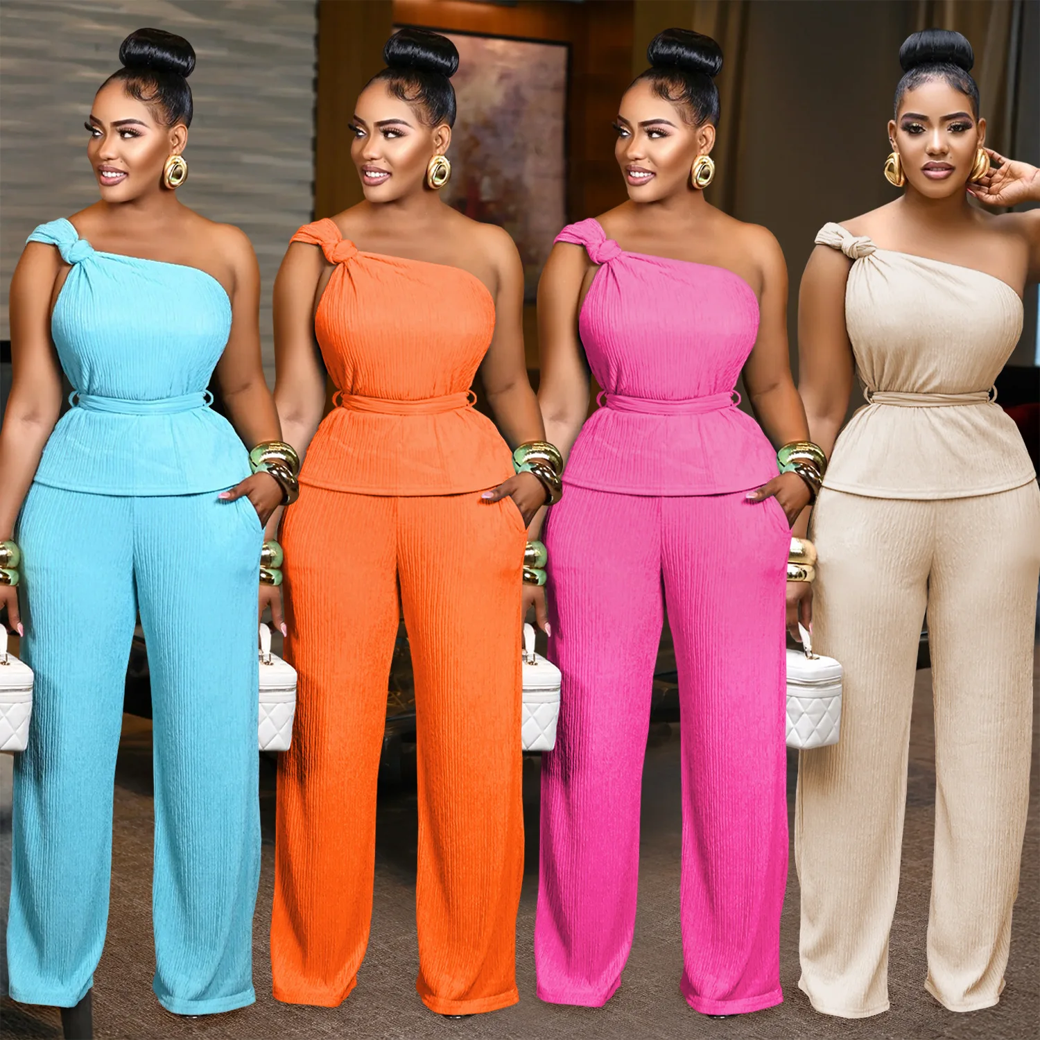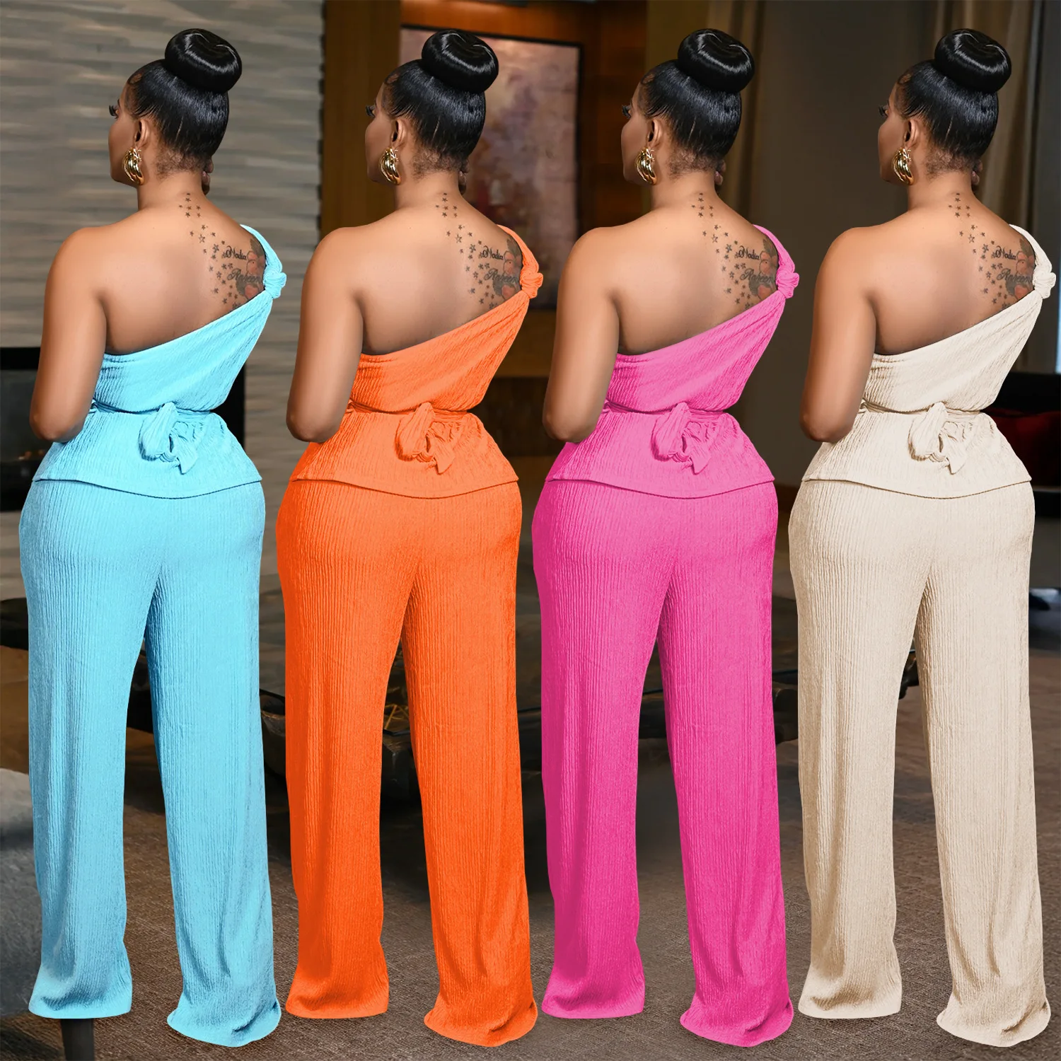 Casual Loose Romper Solid Color Wide Leg Sleeveless Jumpsuits Two Piece Top and Pant Sets