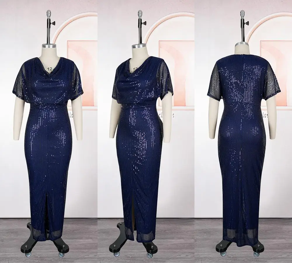 Wholesale Elegant African Dresses Sequin High Quality Shinny Plus Size Evening Dresses for Women