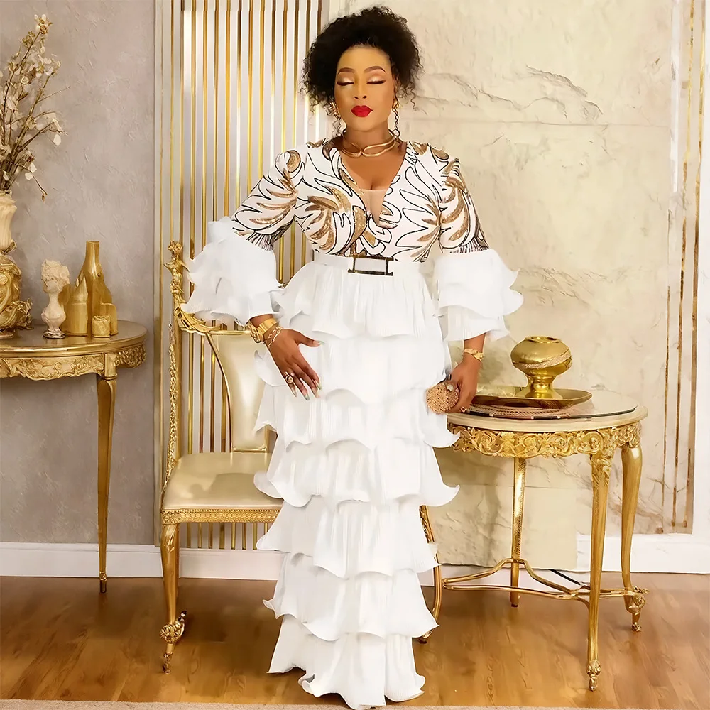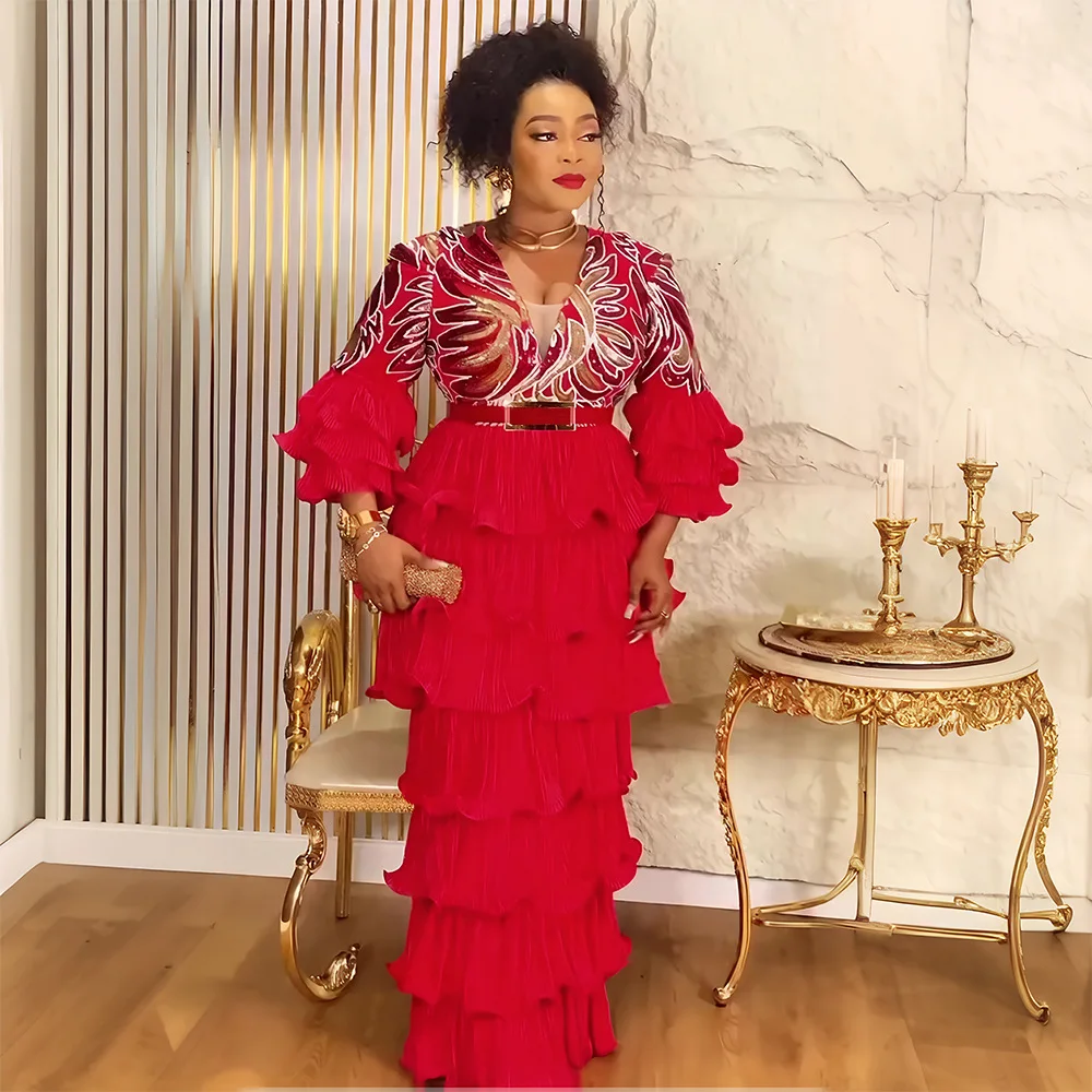 Elegant High Waist Fashion African Straight Dress Floral Sequin Plus Size Prom Dresses for Women Party Dresses