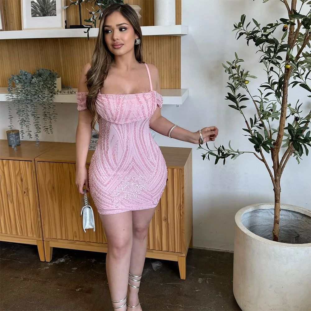 Summer Suspender Skirt Slim Fit Casual Dress Sequin Tulle Night Club Dresses for Women