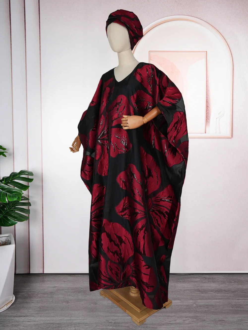 Traditional African Kaftan Dress for Party Elegant African Boubou Dress with Headtie
