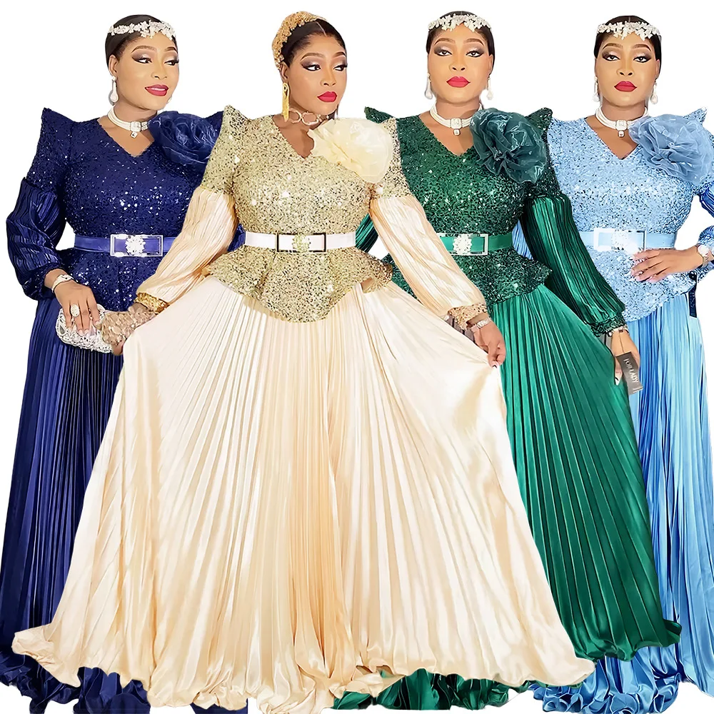 Newest African Dresses for Women Clothing Luxury Plus Size Sequins Gown Party Dress