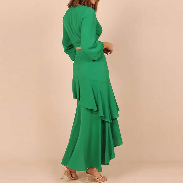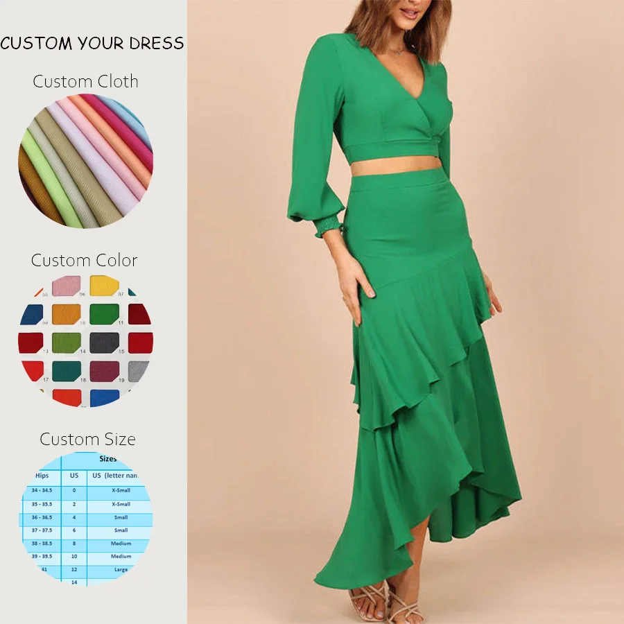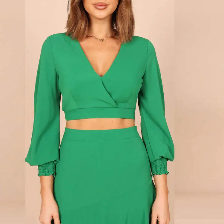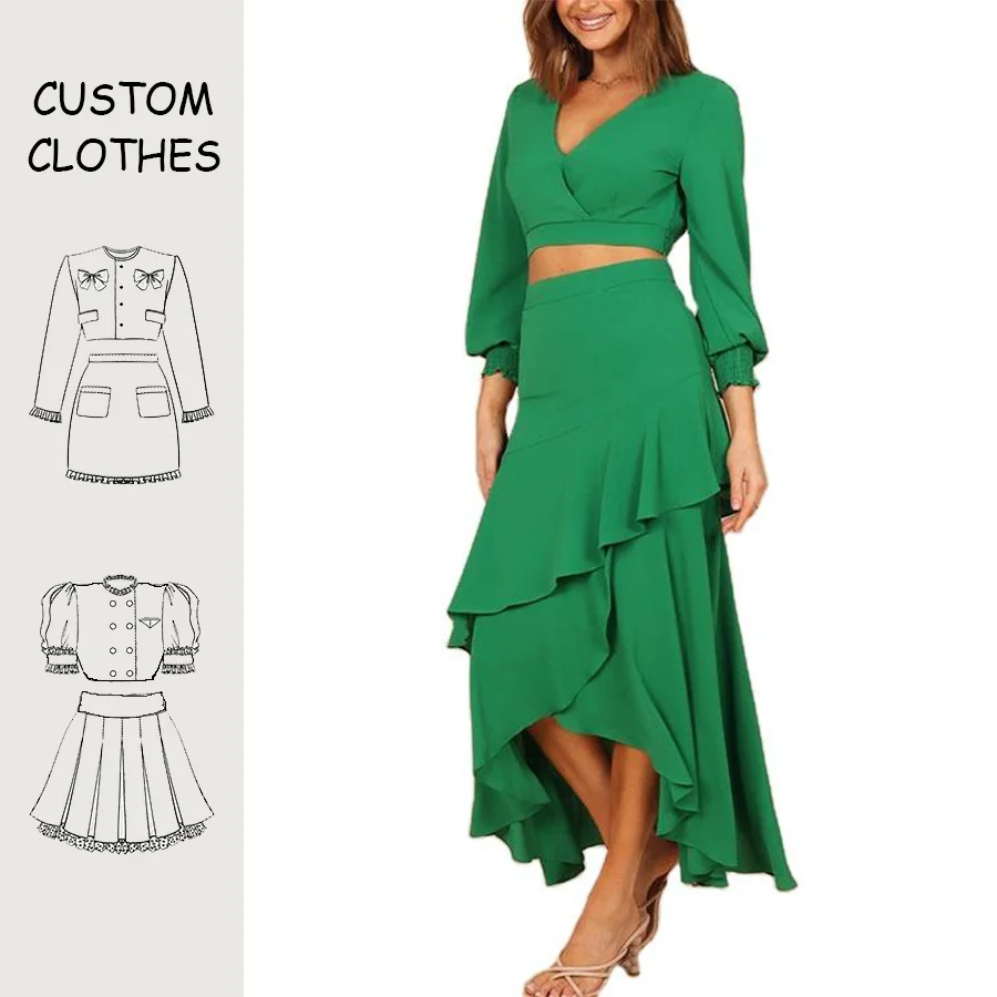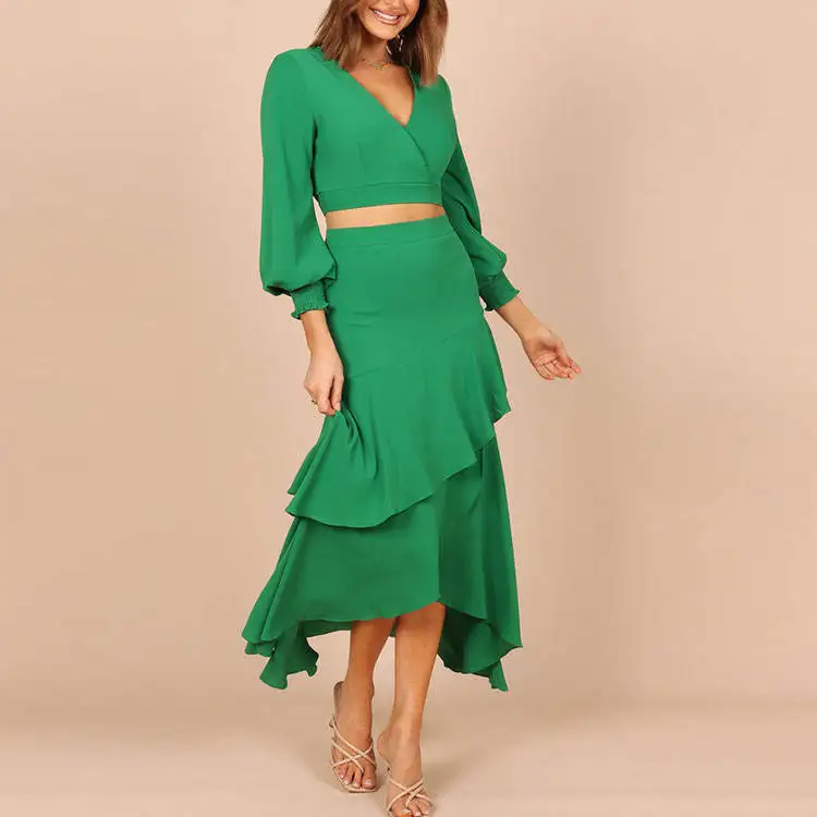 OEM Factory Wholesale Clothing Custom Summer Long Sleeve Tops Midi Skirts Suits Women Ladies Casual Two Piece Skirt Sets