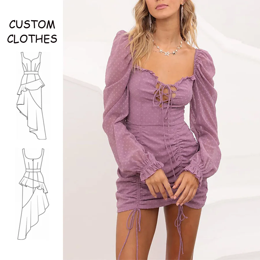 OEM Guangzhou Clothes Quality Womens Sexy Mini Custom 2025 Puff Sleeve Chiffon Mesh Dress Sun Dresses Women Casual