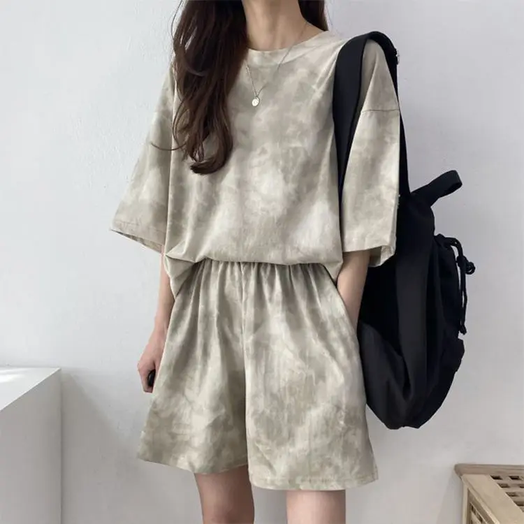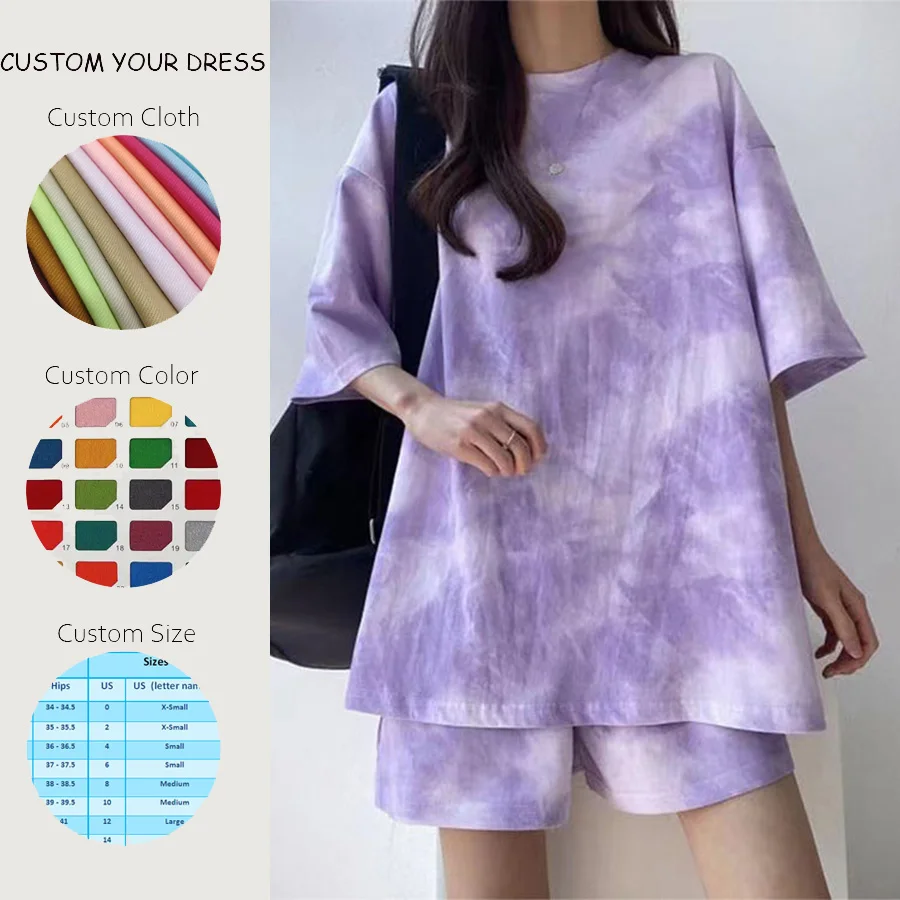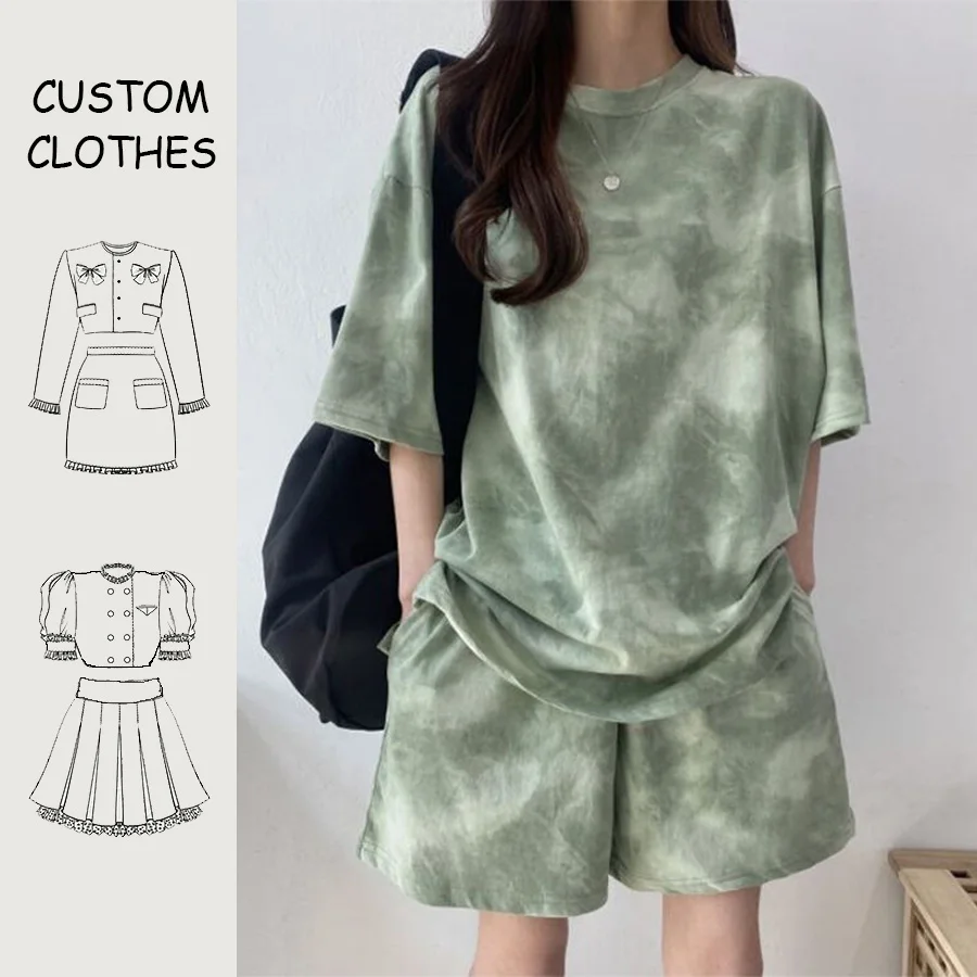 Custom OEM Women's 2-Piece Sports Top & Above-Knee Shorts Set 100% Cotton Terry Fleece O-Neck Collar Casual Summer Loungewear