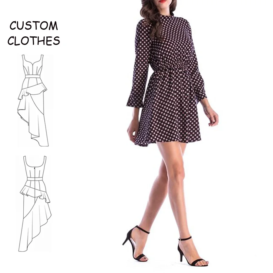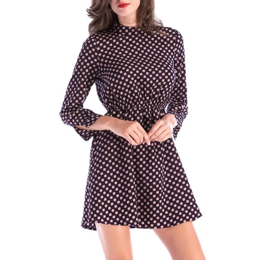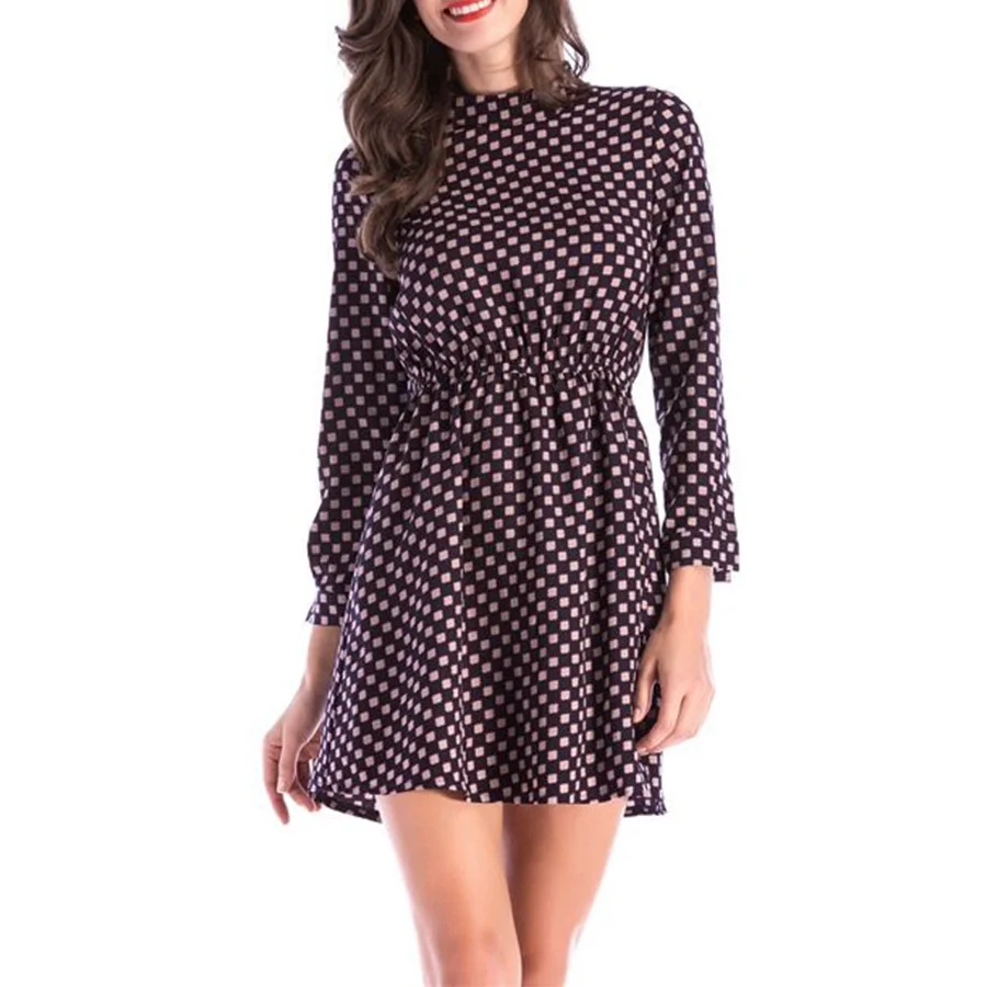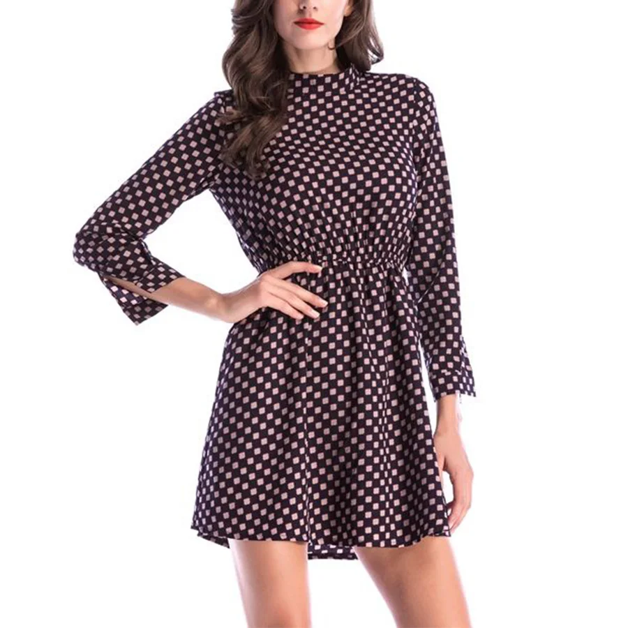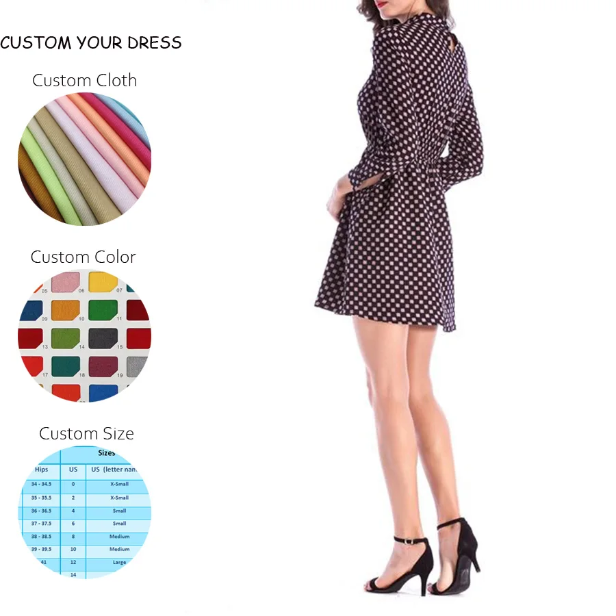 OEM High Quality Custom Casual Summer Spring Long Sleeve Women's Fashion Dress Dot Pattern Plain Dyed Natural Waist Woven Fabric