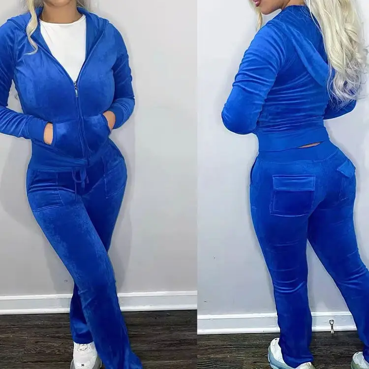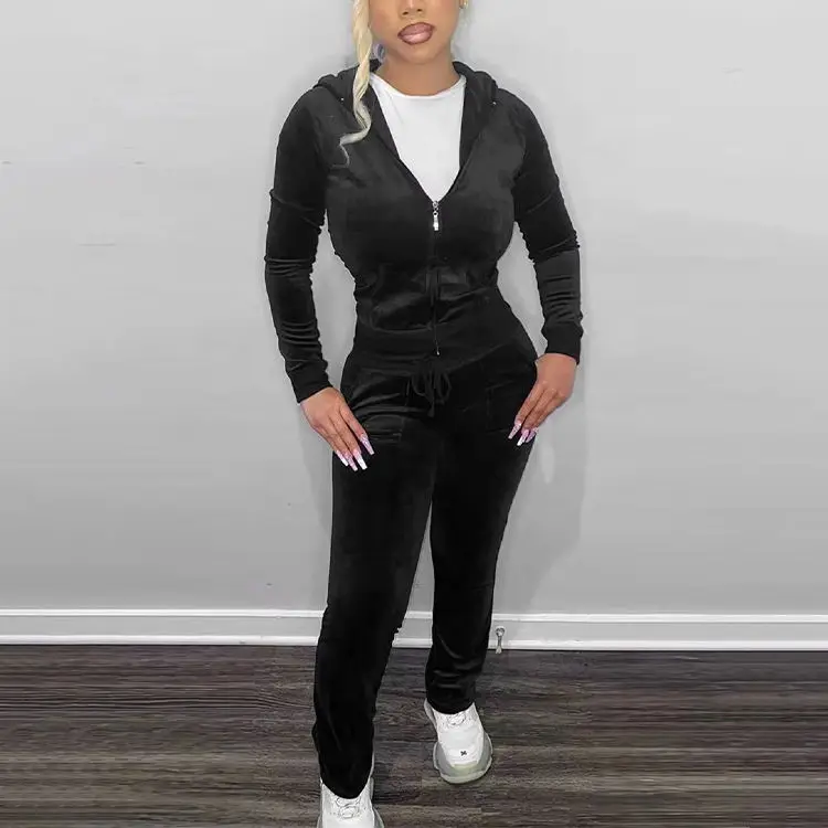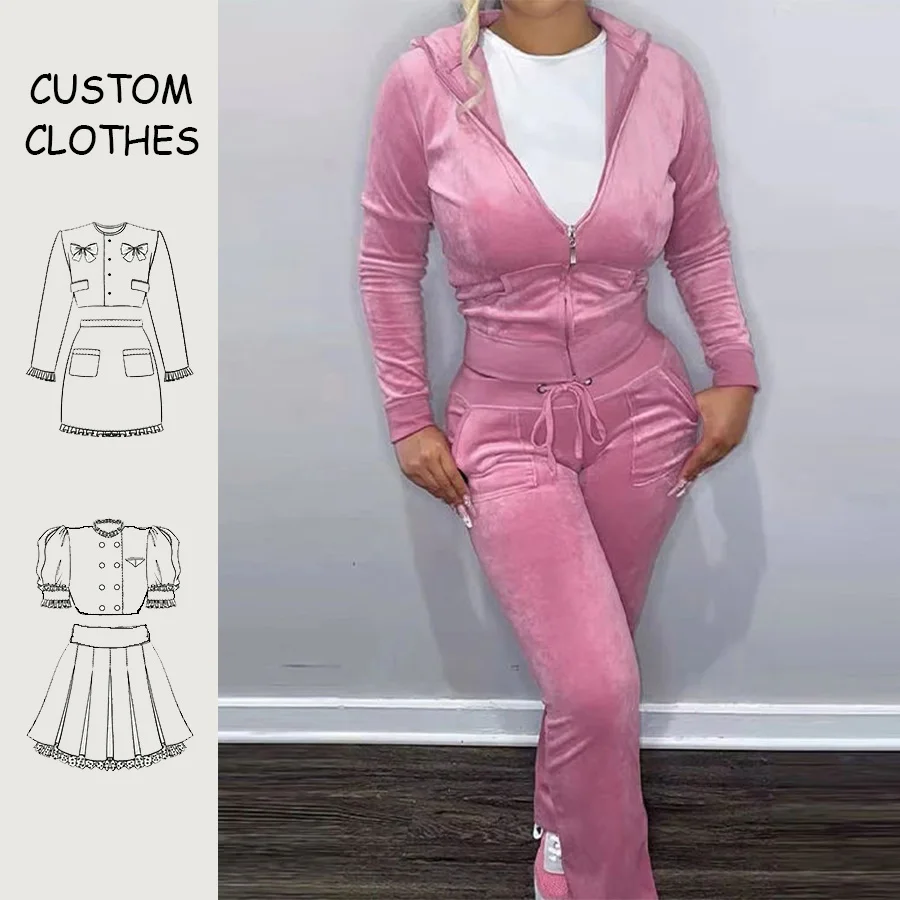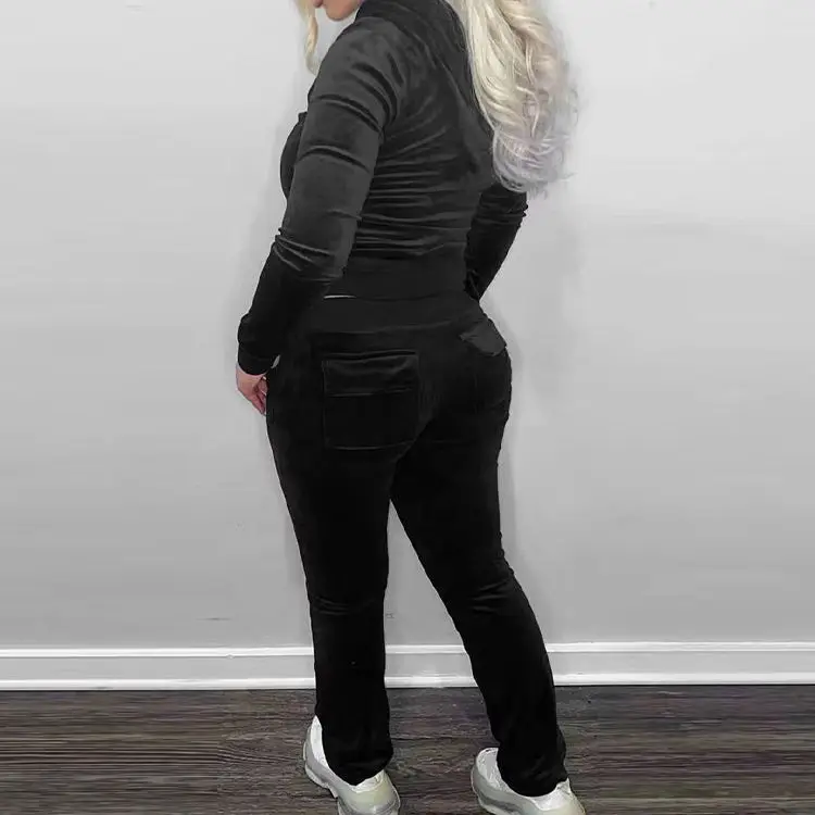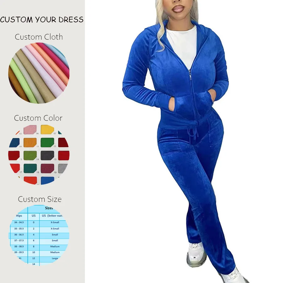 Custom Logo Women's 2-Piece Workout Loungewear Tracksuit Set Solid Velvet Fabric Eco-Friendly & Breathable OEM Service