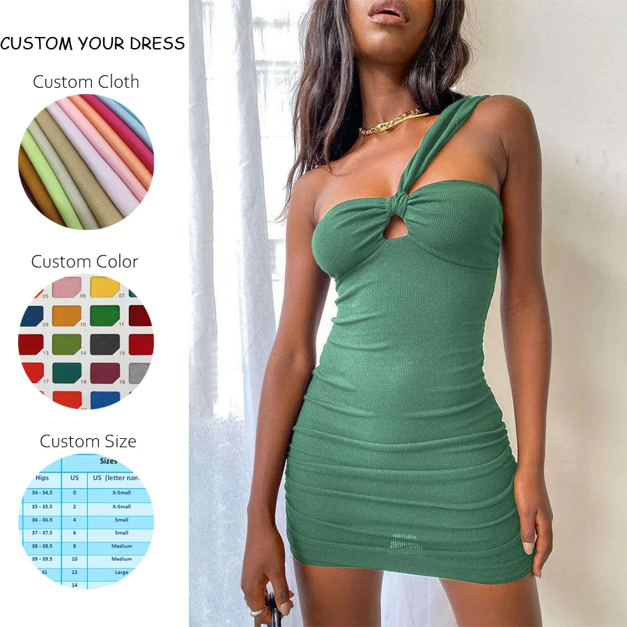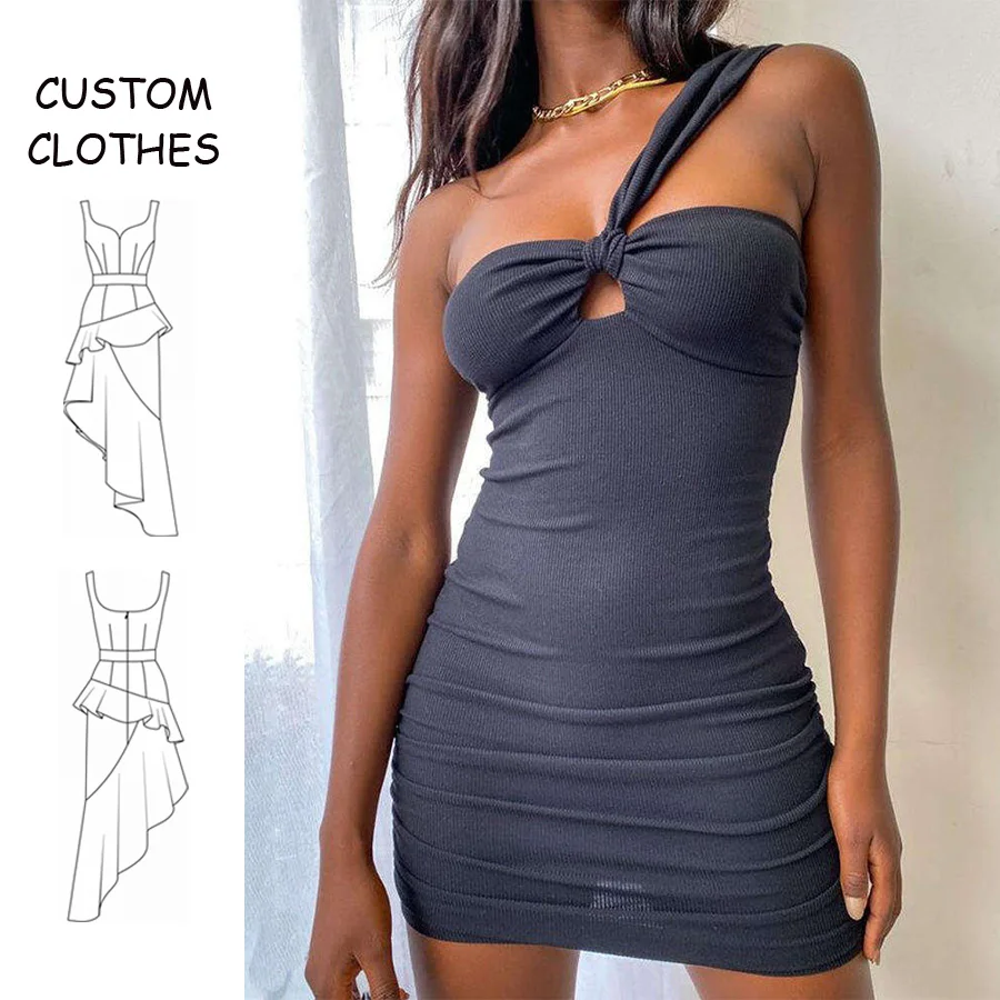 OEM New Arrival Summer Women Asymmetrical Shoulder Regular Fit Hip Wrap One Shoulder Strap Hollow Casual Dress Manufacturing