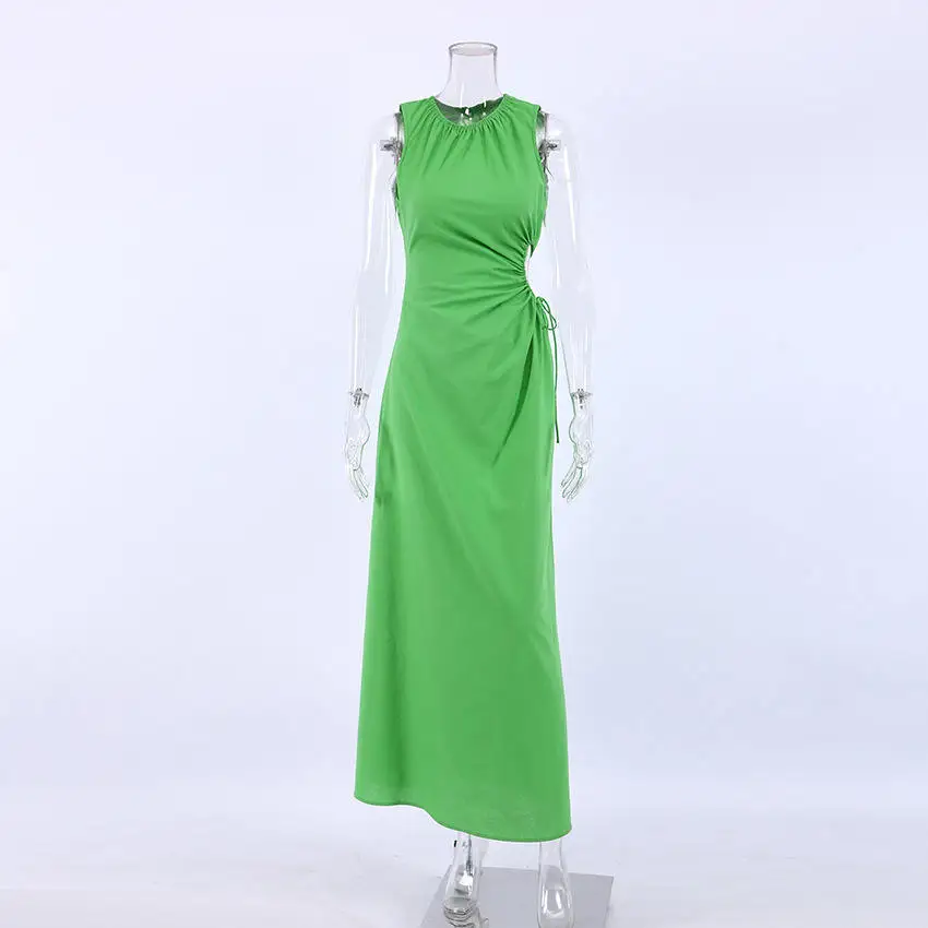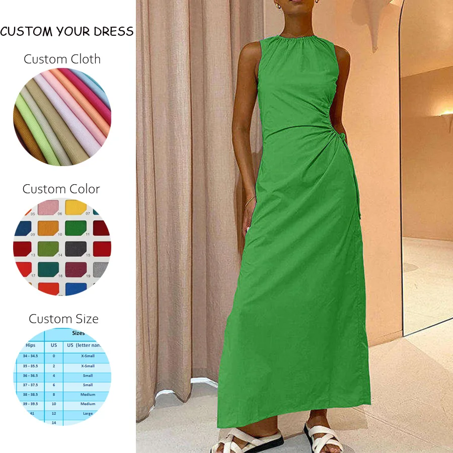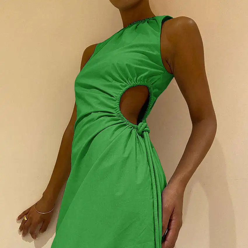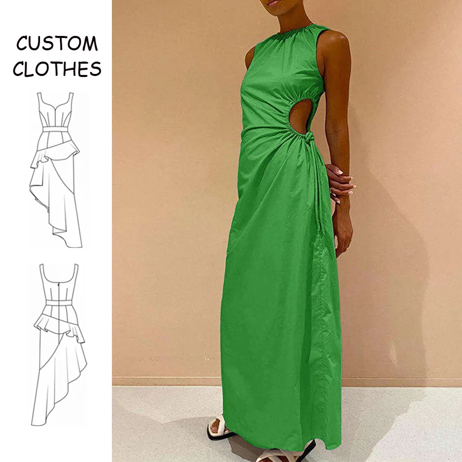 OEM Ladies Bodycon Cotton Dresses Custom Hollow Out Hole Long Dress Summer Sleeveless Womens Party Dress