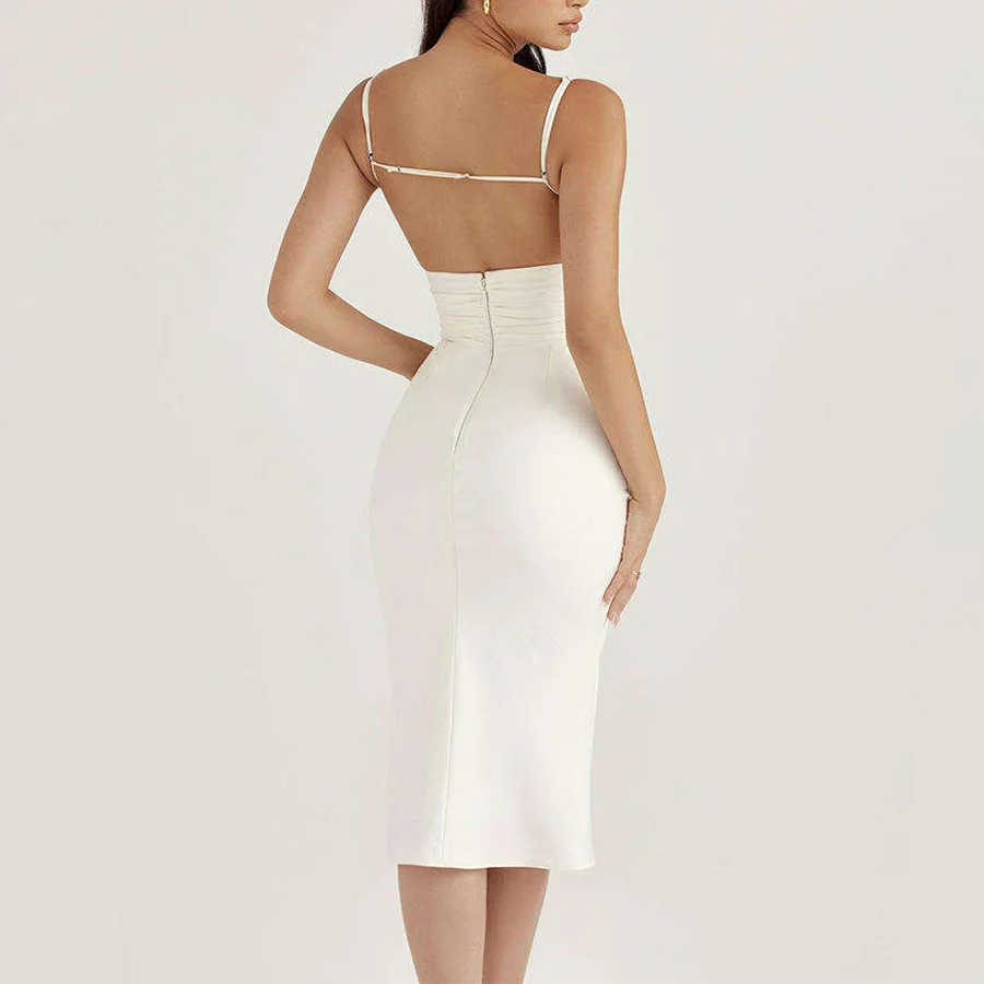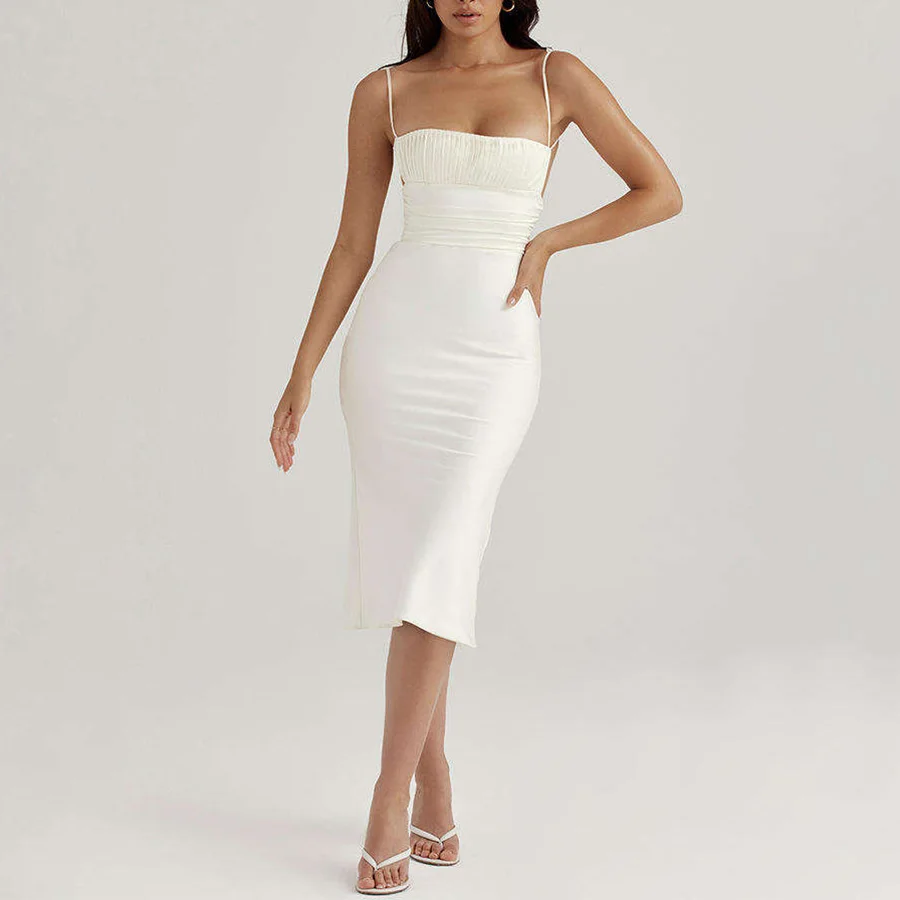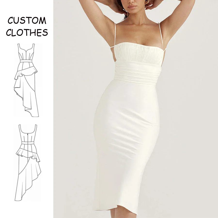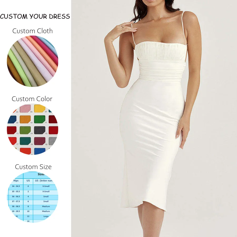 OEM Sexy Adjustable Straps Ladies Custom White Backless Fashion Women's Clothing OEM Hollow Out Pleats Elegant Dress