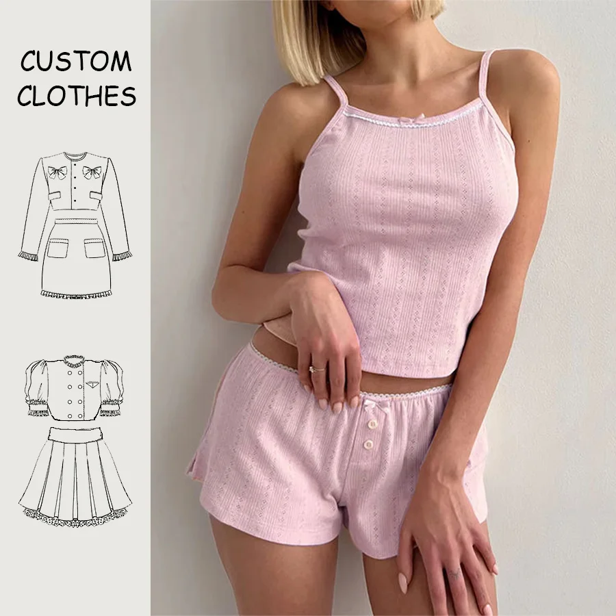 Women's 2 Piece Casual Loungewear Shorts Set Solid Bow 100% Cotton Terry Fabric Breathable Eco-Friendly OEM Custom Logo Summer