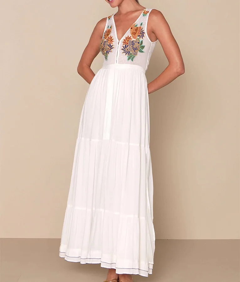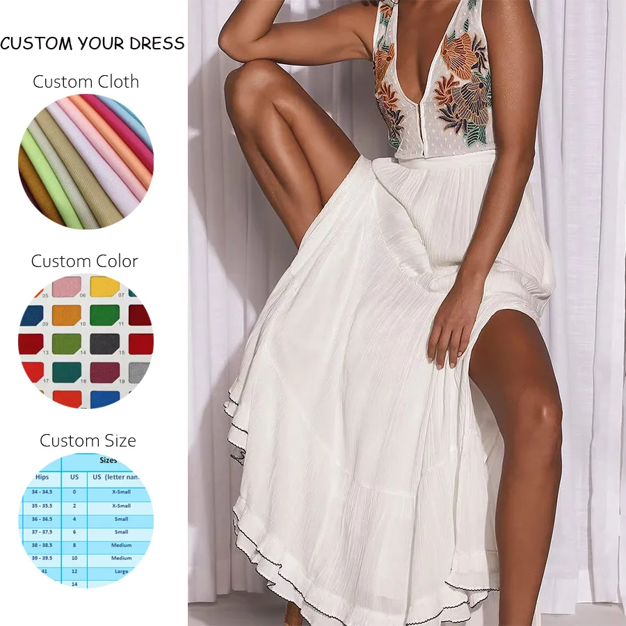 2025 OEM Casual V Neck Custom Smocked Waist Boho Dress Women Bohemian Maxi Dresses for Birthday Wedding Party